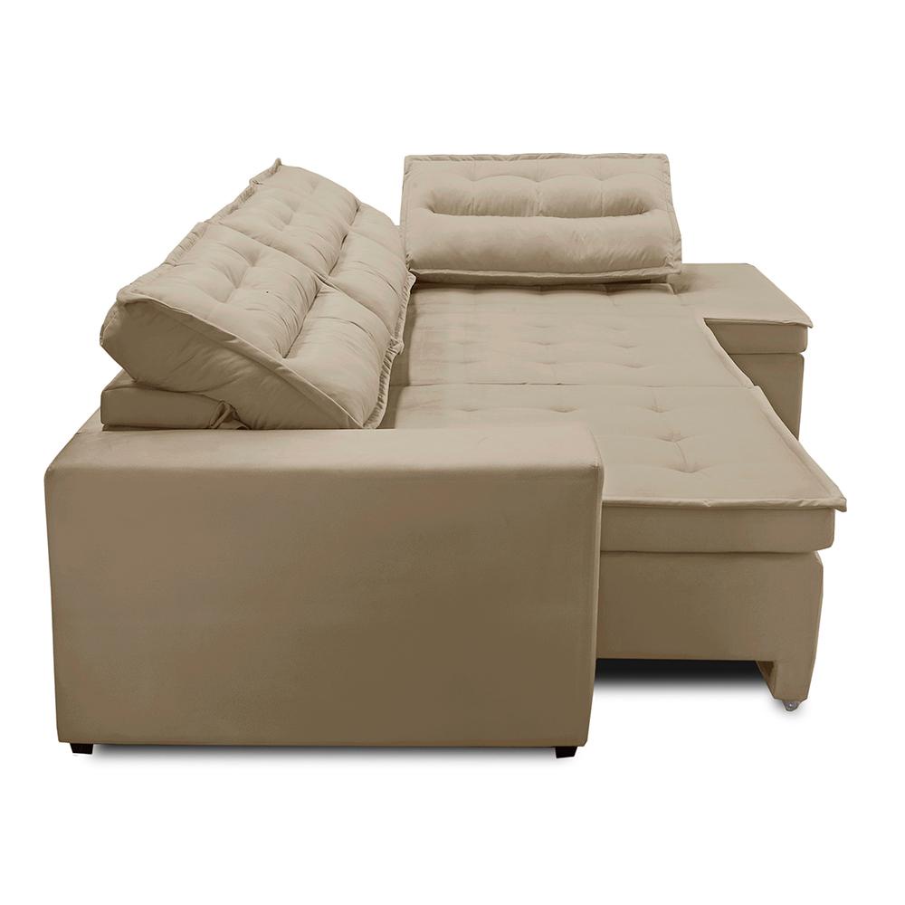 Sofá de Canto Retrátil e Reclinável com Molas 3,00x2,00 Virginia Suede Bege Adonai Estofados
