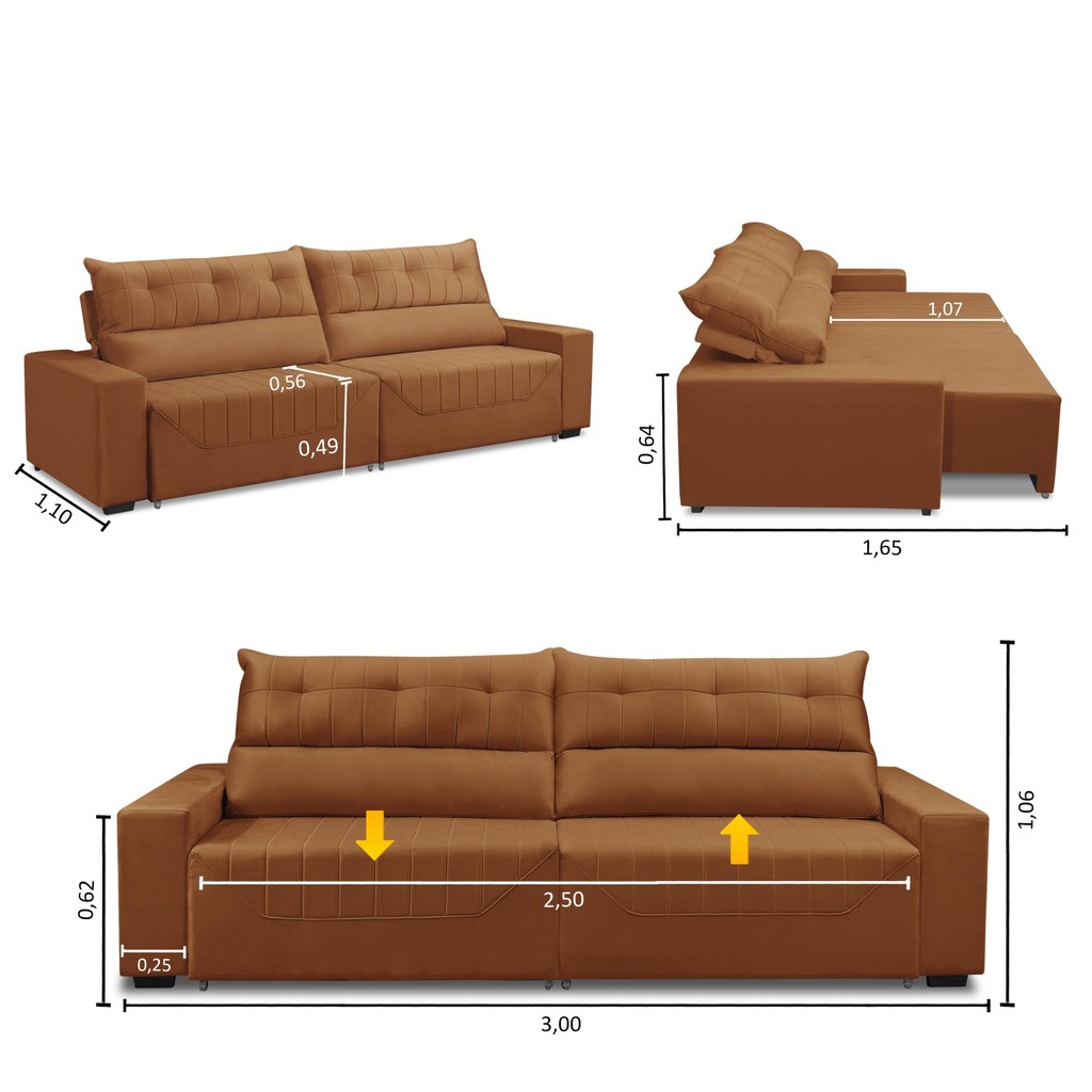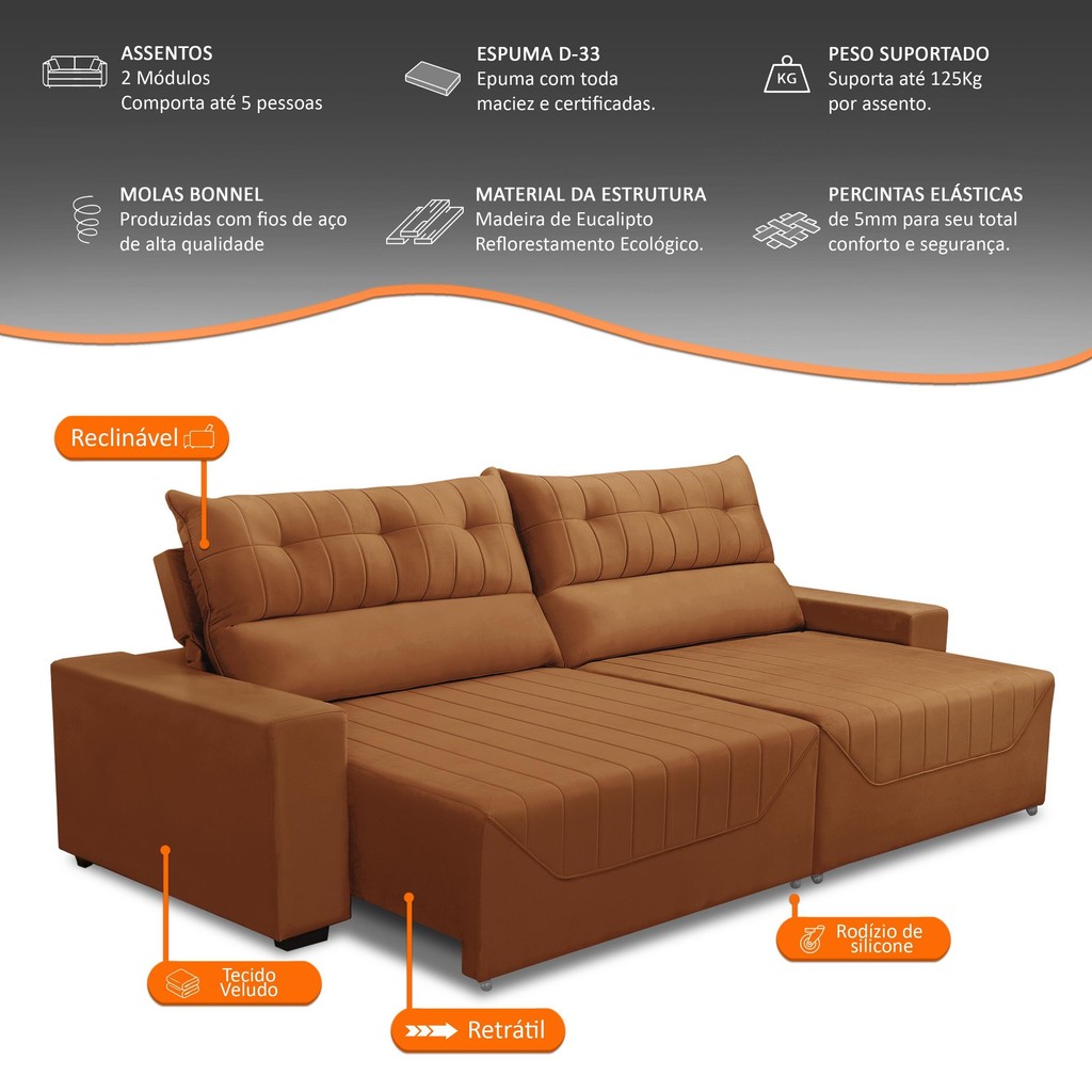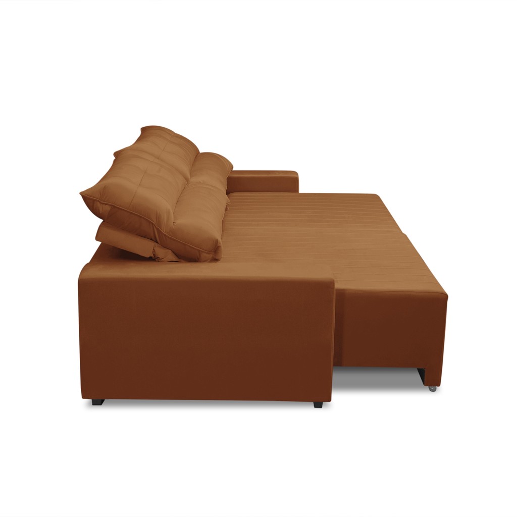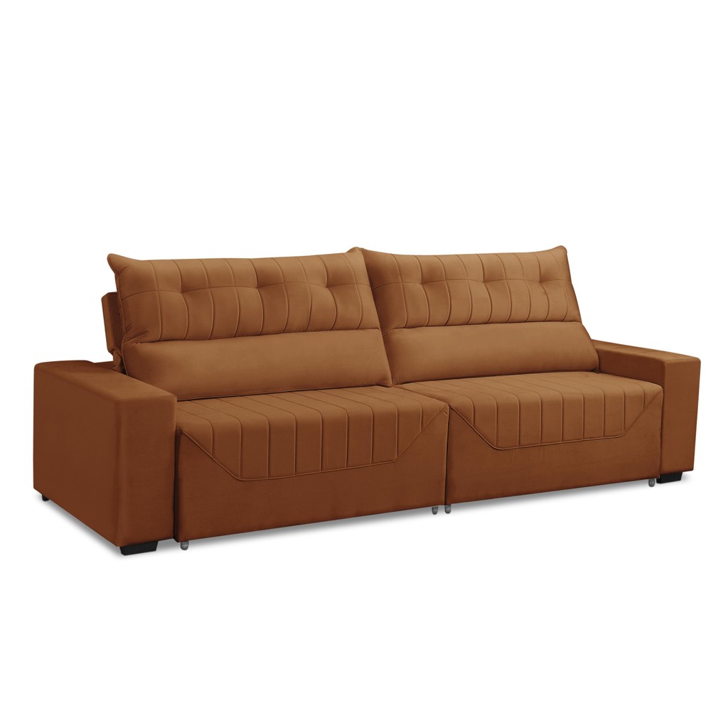 Sofá Retrátil e Reclinável 5 Lugares 3,00m Antonella Veludo Terracota Adonai Estofados