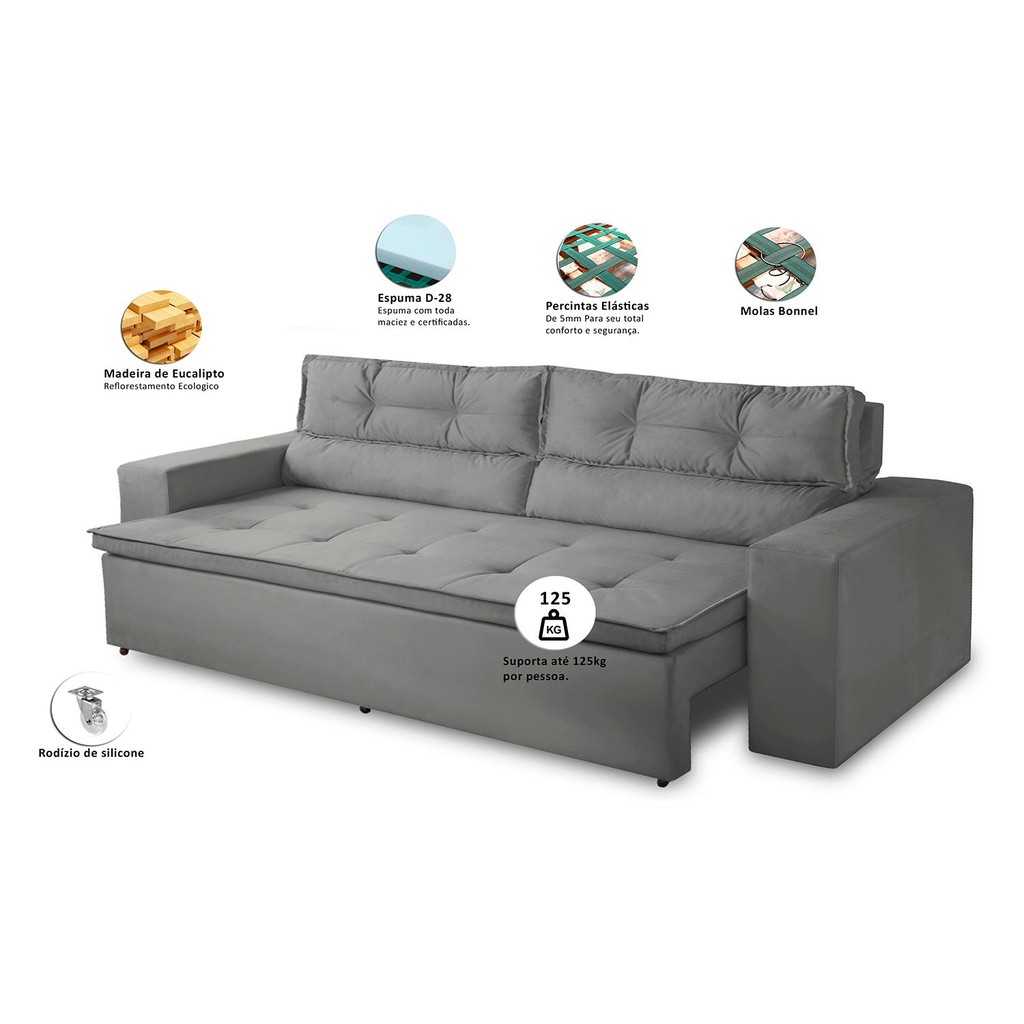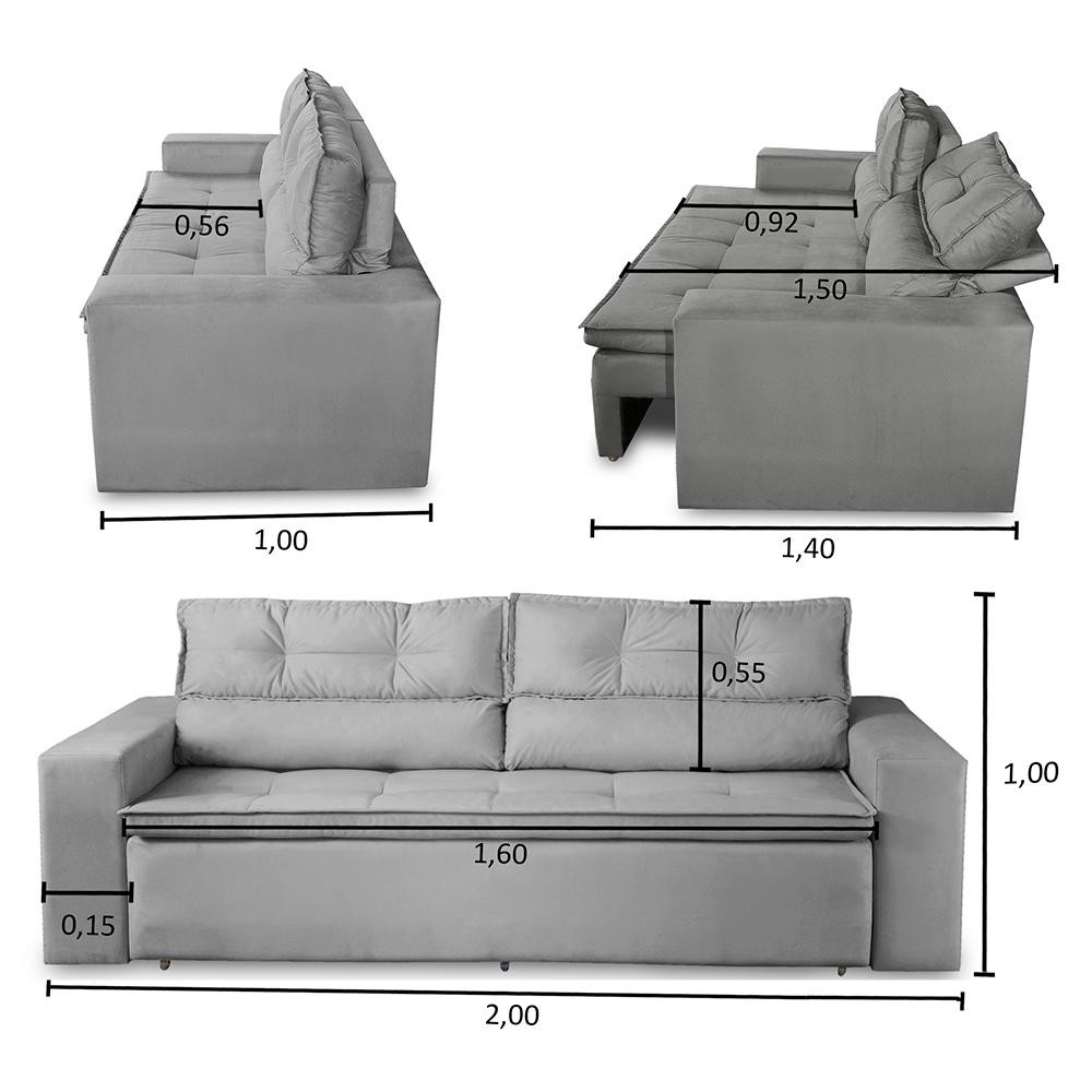 Sofá Retrátil Reclinável 3 lugares Molas 2,00m Vegas Suede
