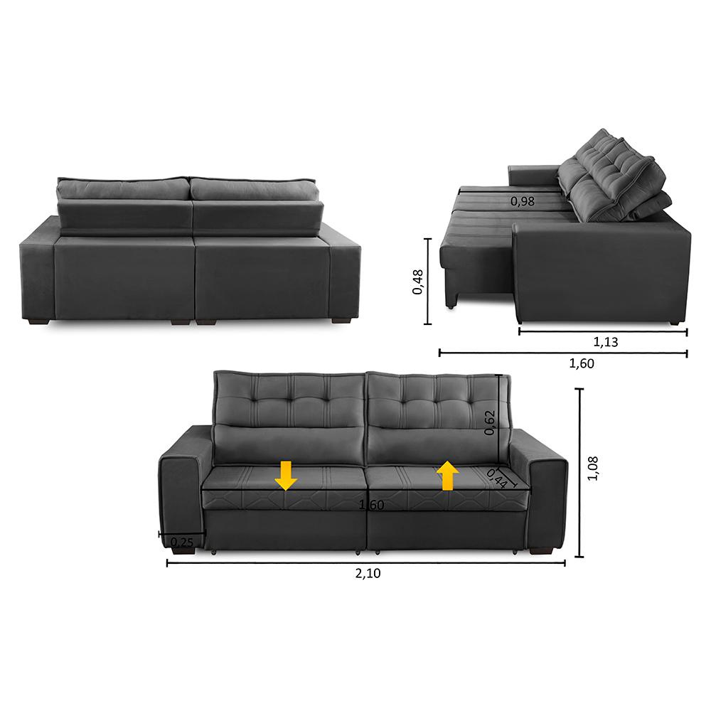 Sofá Retrátil e Reclinável 3 Lugares com Molas 2,10m Dani Suede Cinza Adonai Estofados