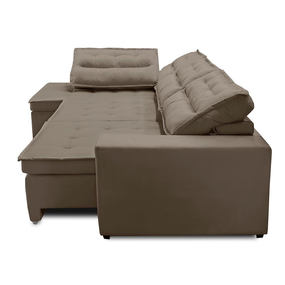 Sofá de Canto Retrátil e Reclinável com Molas 3,00x2,00 Esq Virginia Suede Cappuccino Adonai Estofados