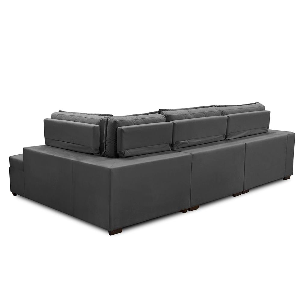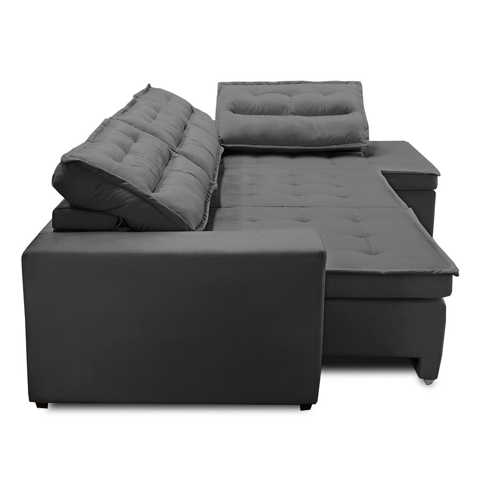 Sofá de Canto Retrátil e Reclinável com Molas 3,00x2,00 Virginia Suede Cinza Adonai Estofados