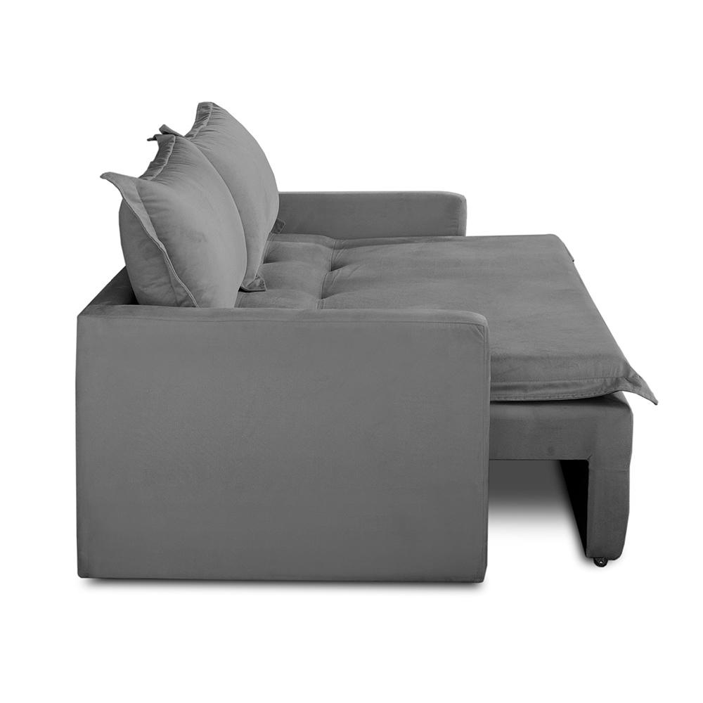Sofá Sem Caixa Retrátil e Reclinável 2,00m com Molas Kiara Suede Cinza Adonai Estofados