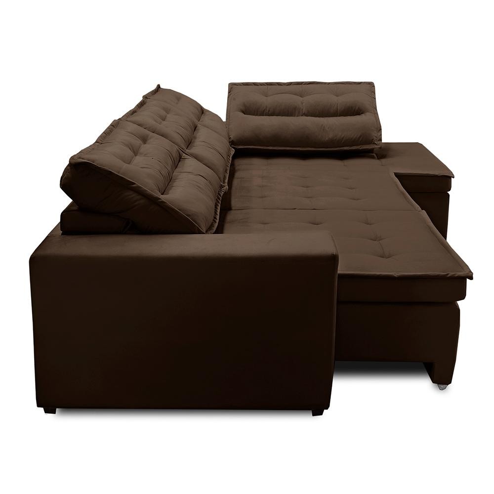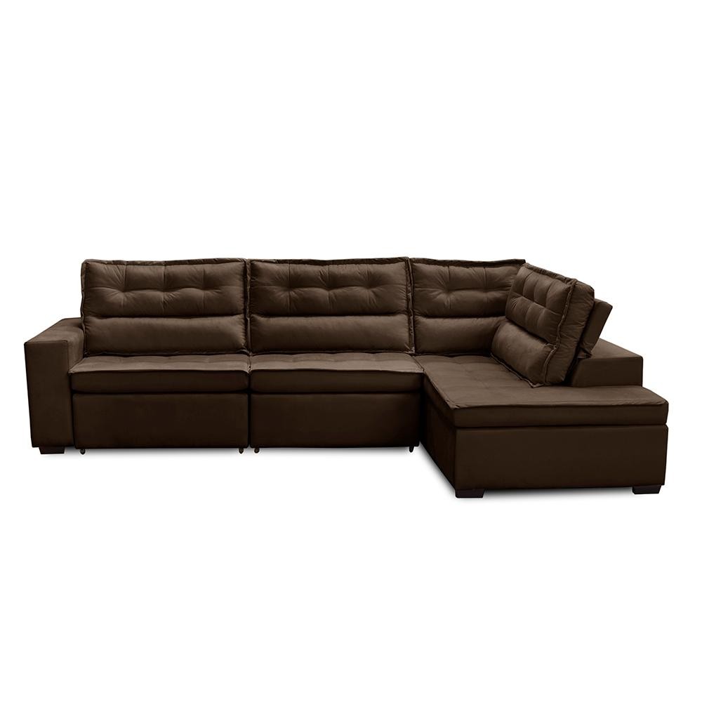 Sofá de Canto Retrátil e Reclinável com Molas 3,00x2,00 Virginia Suede Adonai Estofados