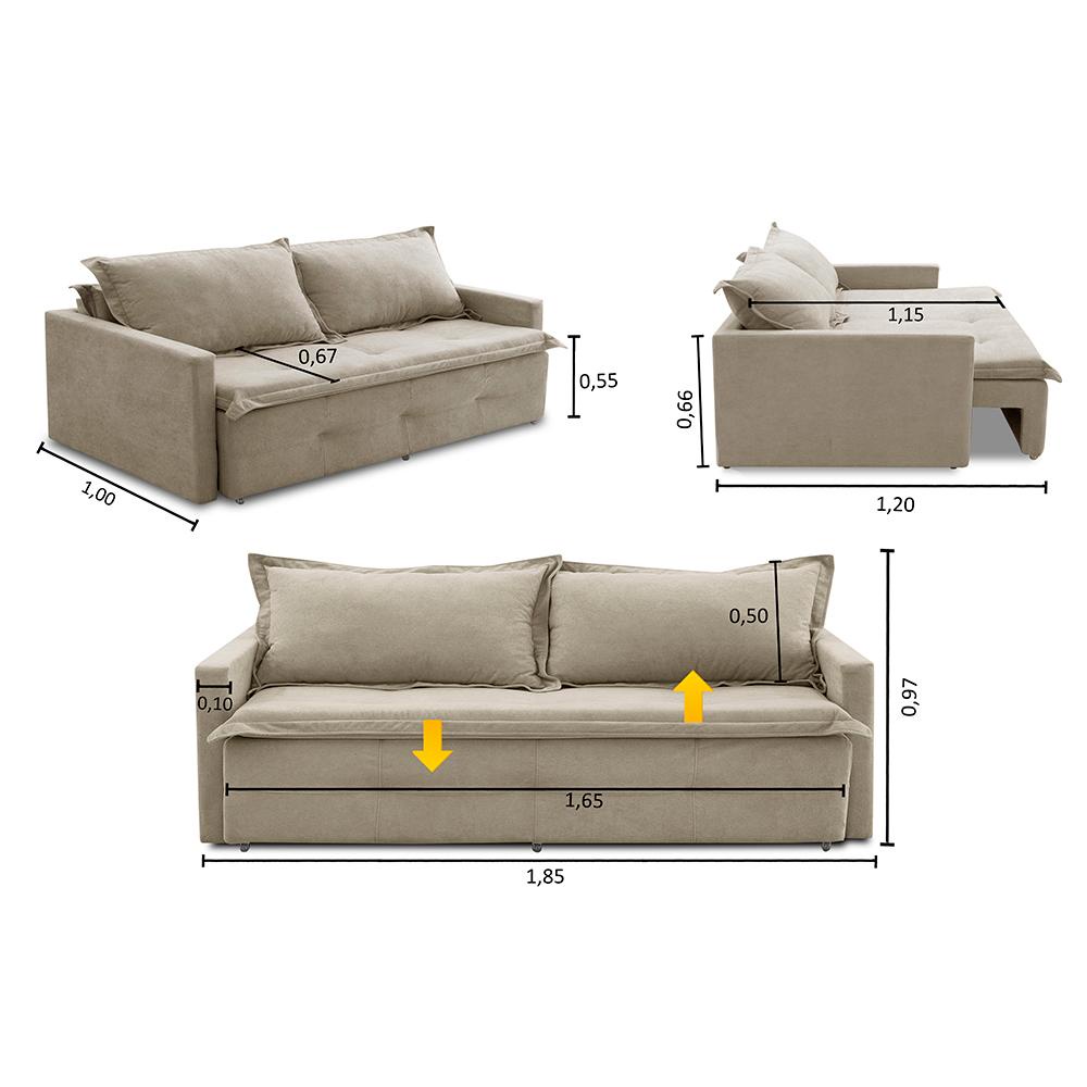 Sofá Sem Caixa Retrátil e Reclinável 1,85m com Molas Maísa Boucle Menta Adonai Estofados