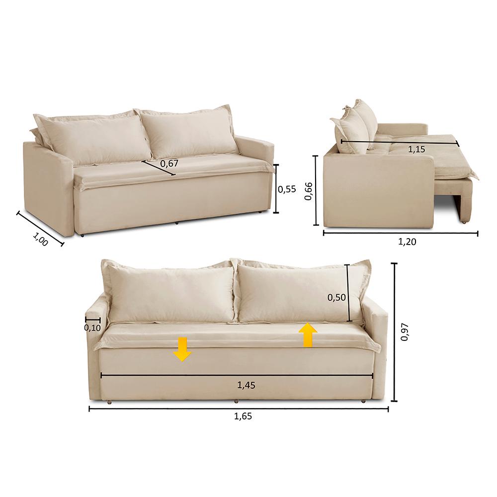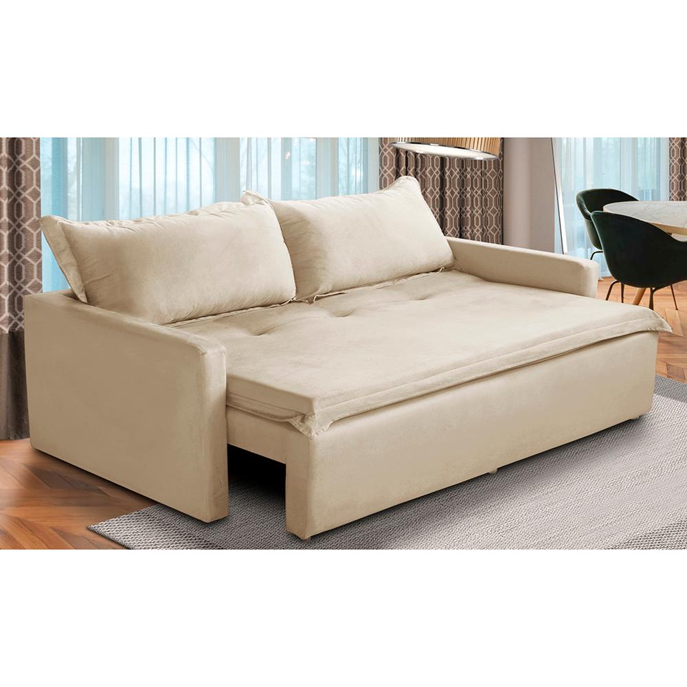 Sofá Sem Caixa Retrátil e Reclinável 1,65m com Molas Kiara Suede Bege Adonai Estofados