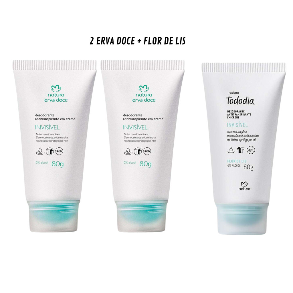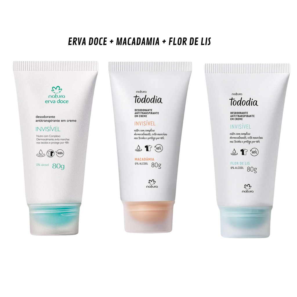 Kit 3 Desodorantes em Creme Natura Leite de Algodão e Outros
