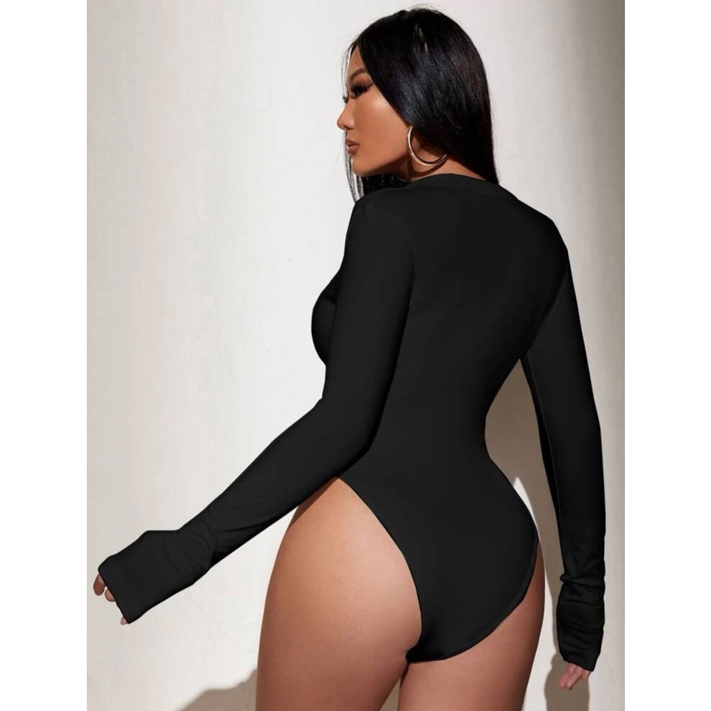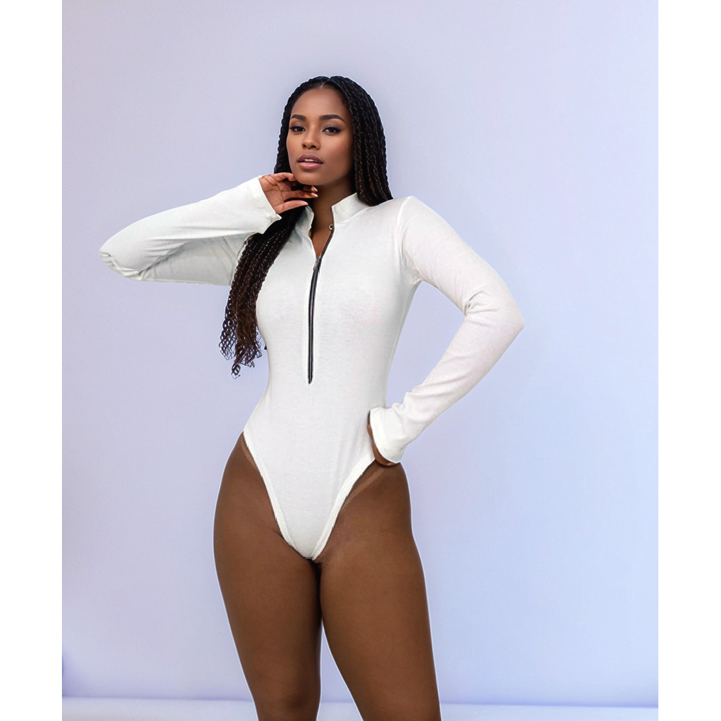 Body ziper com gola manga longa decotado basico dia a dia