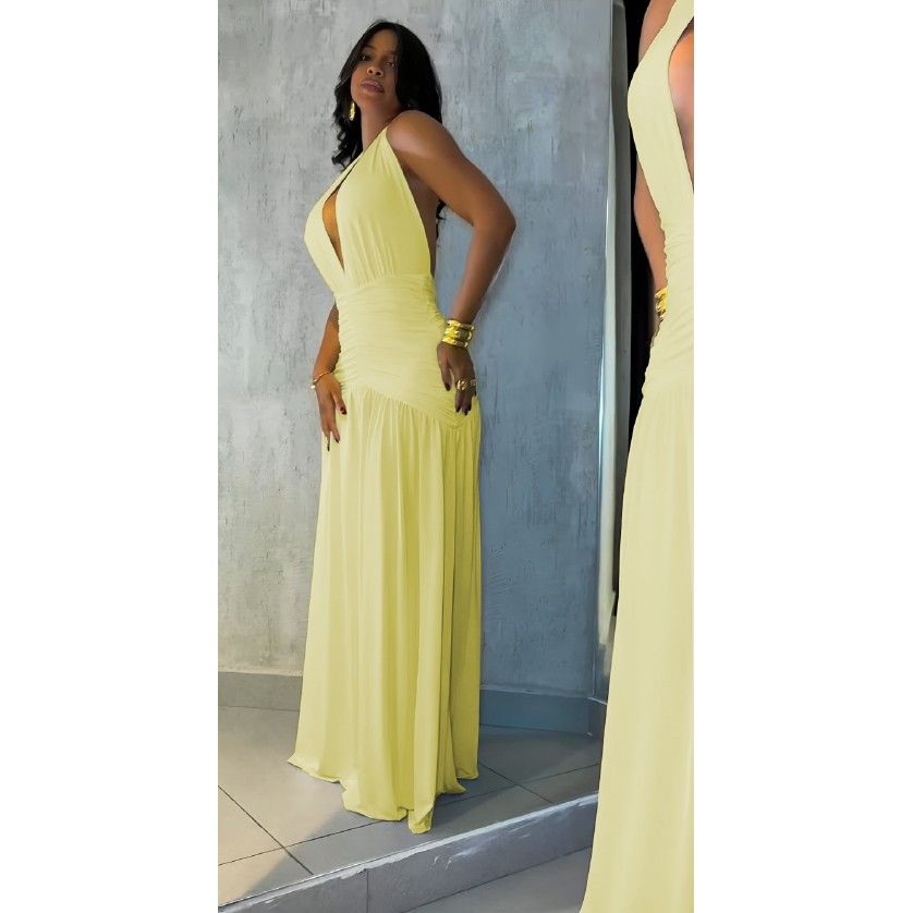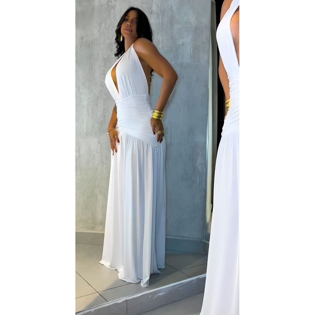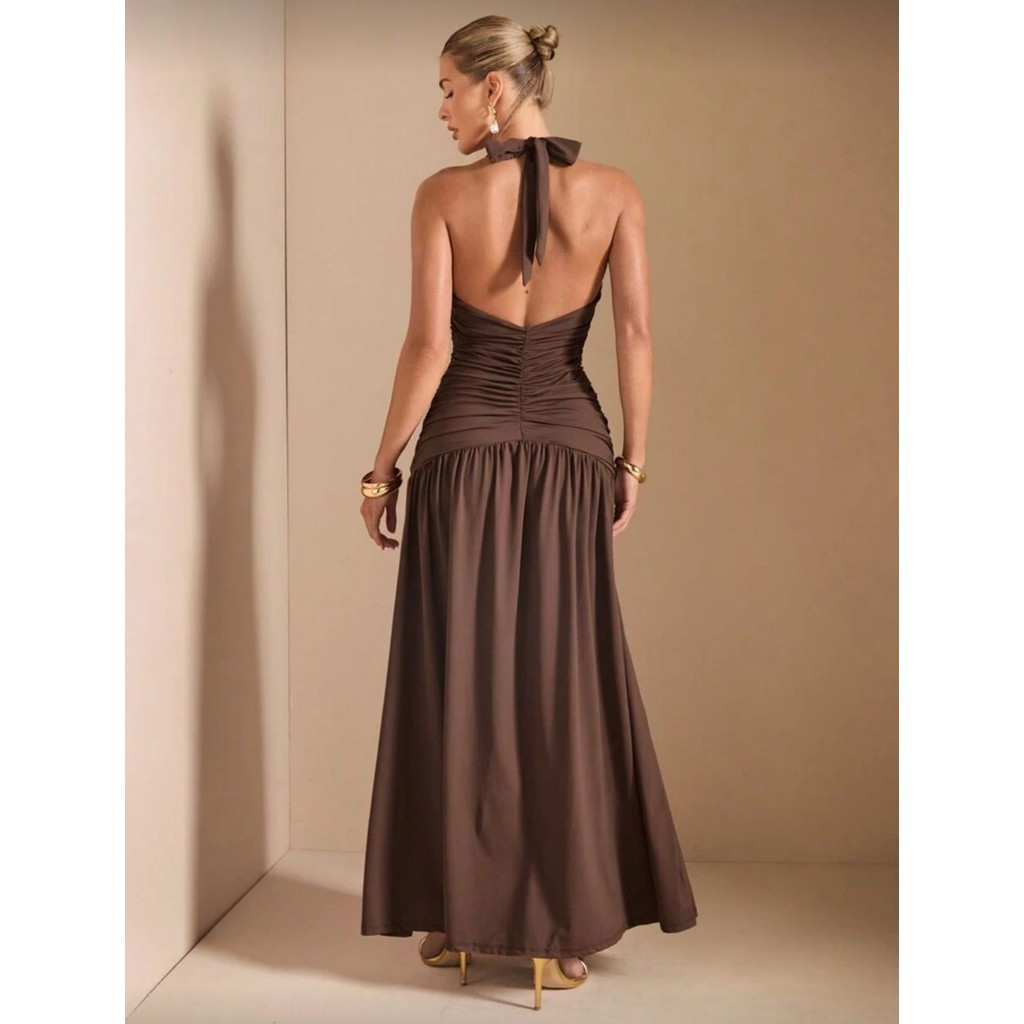 Vestido longo com fenda na perna amarração no pescoço s/bojo tecido suplex elegante festas sofisticação noite casual