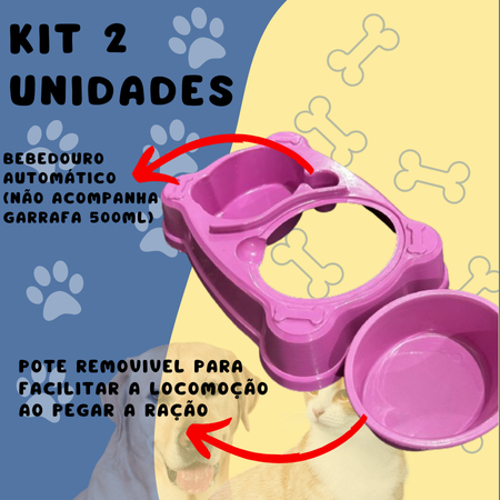 Comedouro e Bebedouro Duplo Automático com suporte para garrafa PET