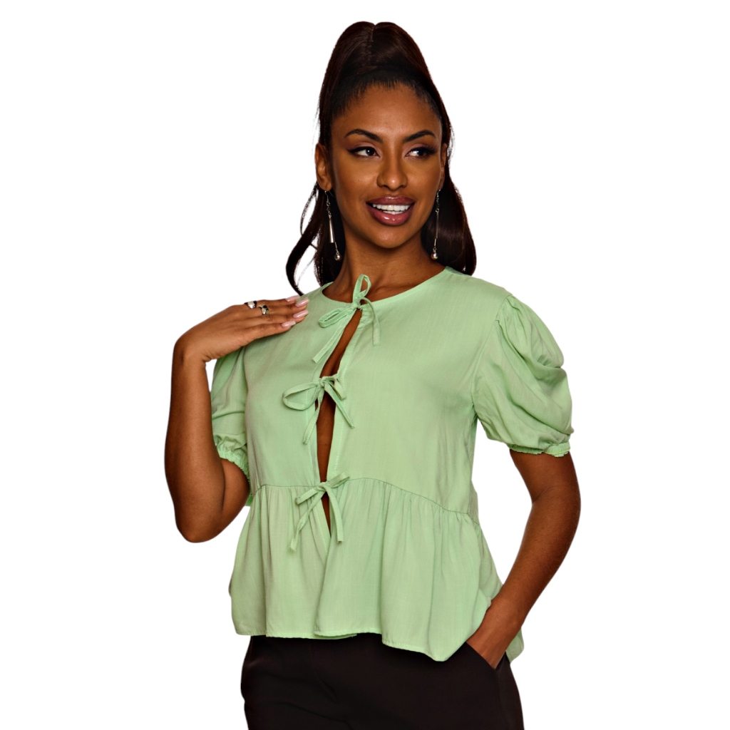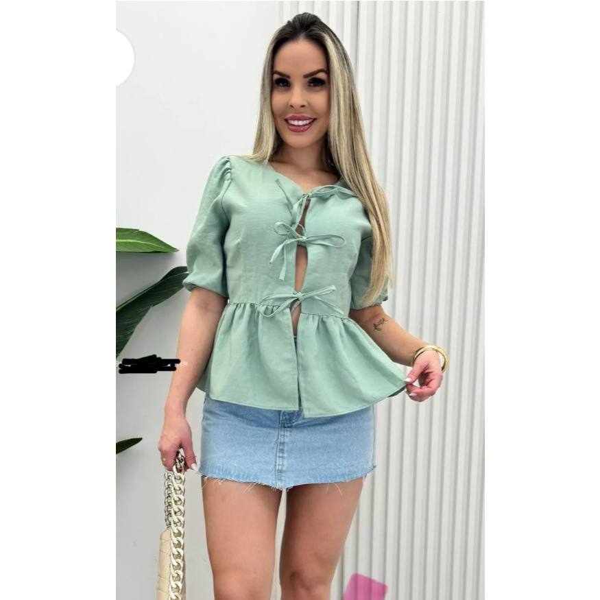 Blusa feminina camisa Bata luxo viscolinho de amarração na frente Verão tamanho P M G E GG