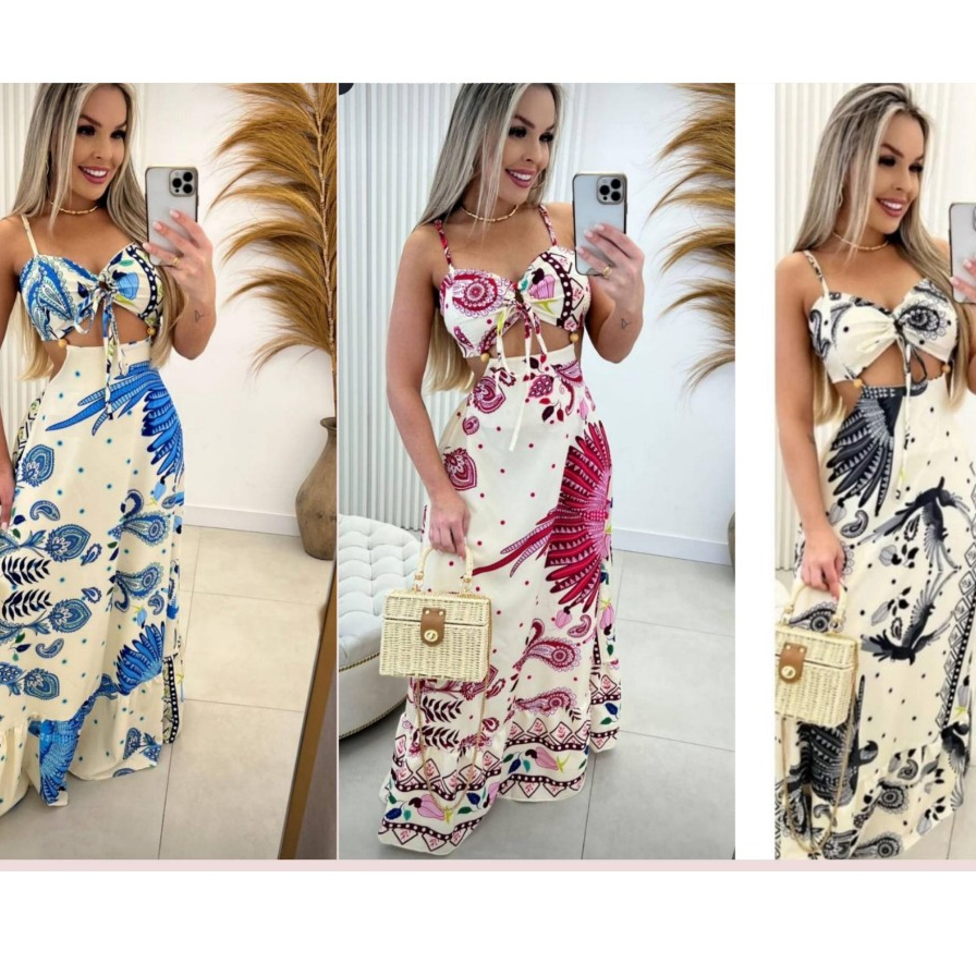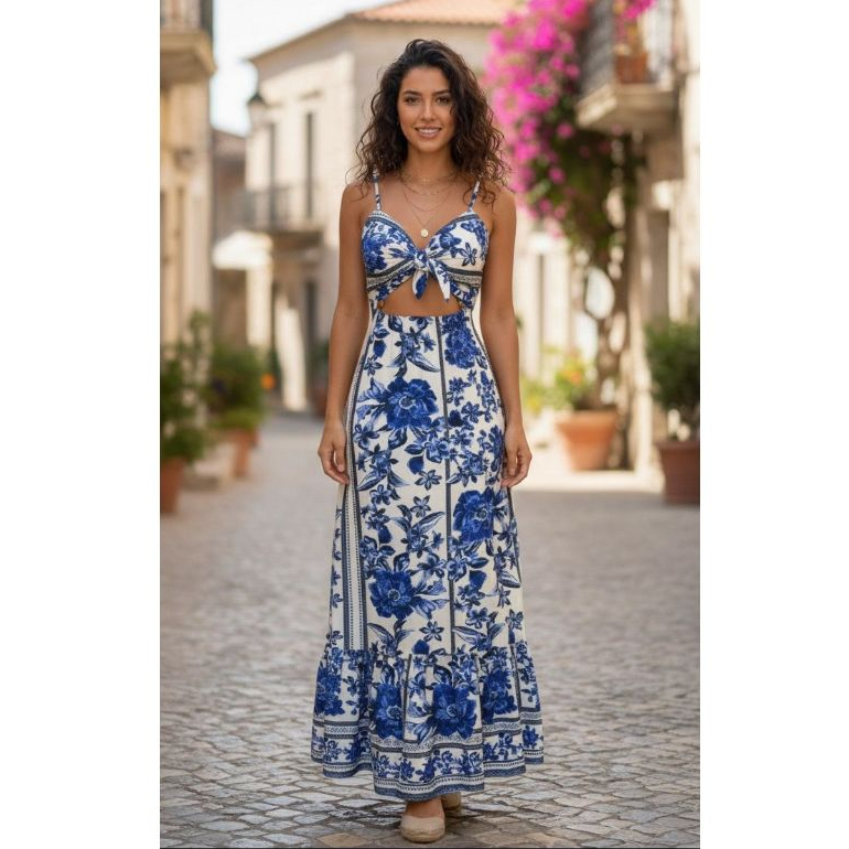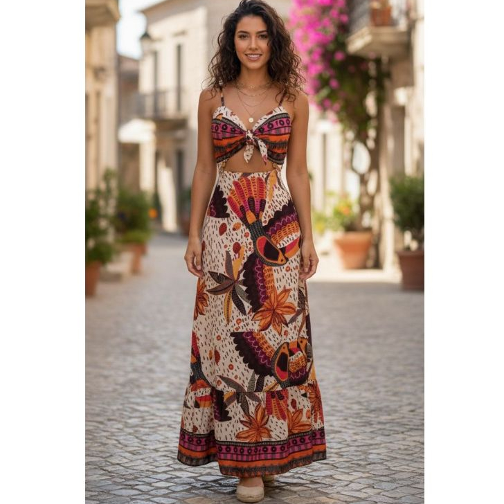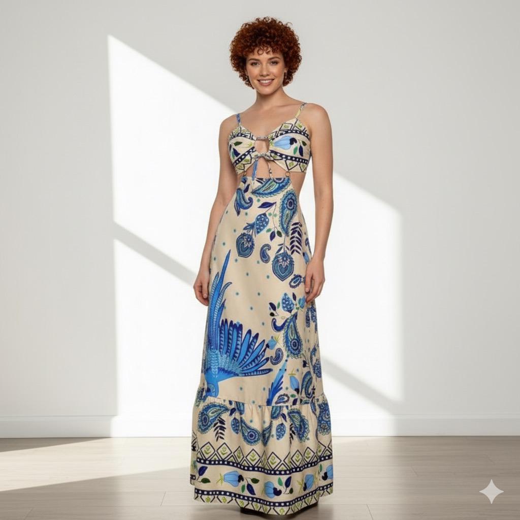 Vestido Longo Estampado Feminino Verão 2025