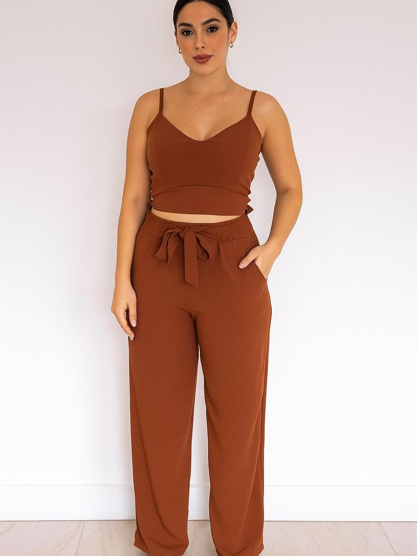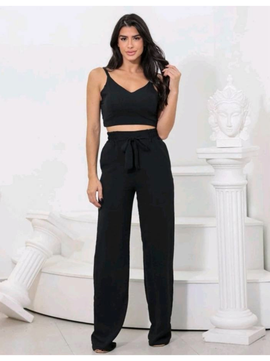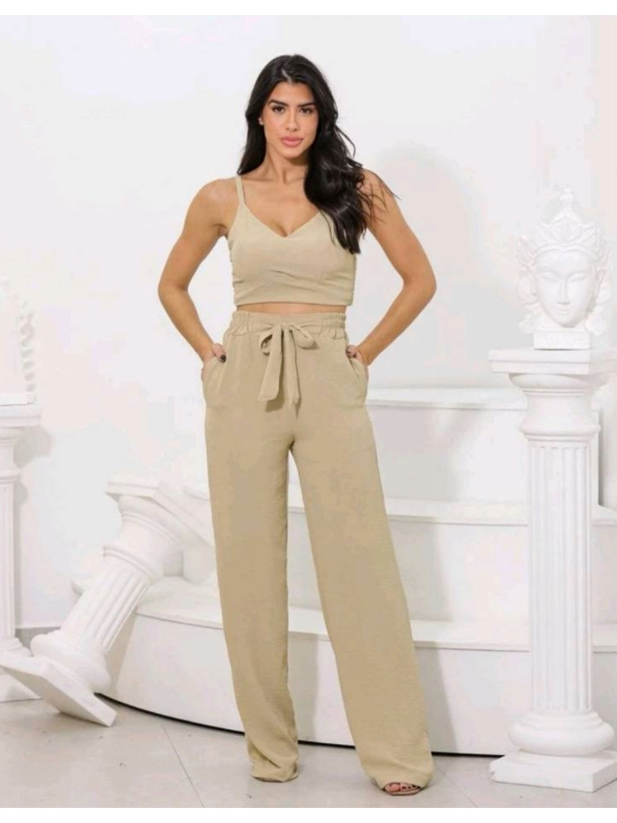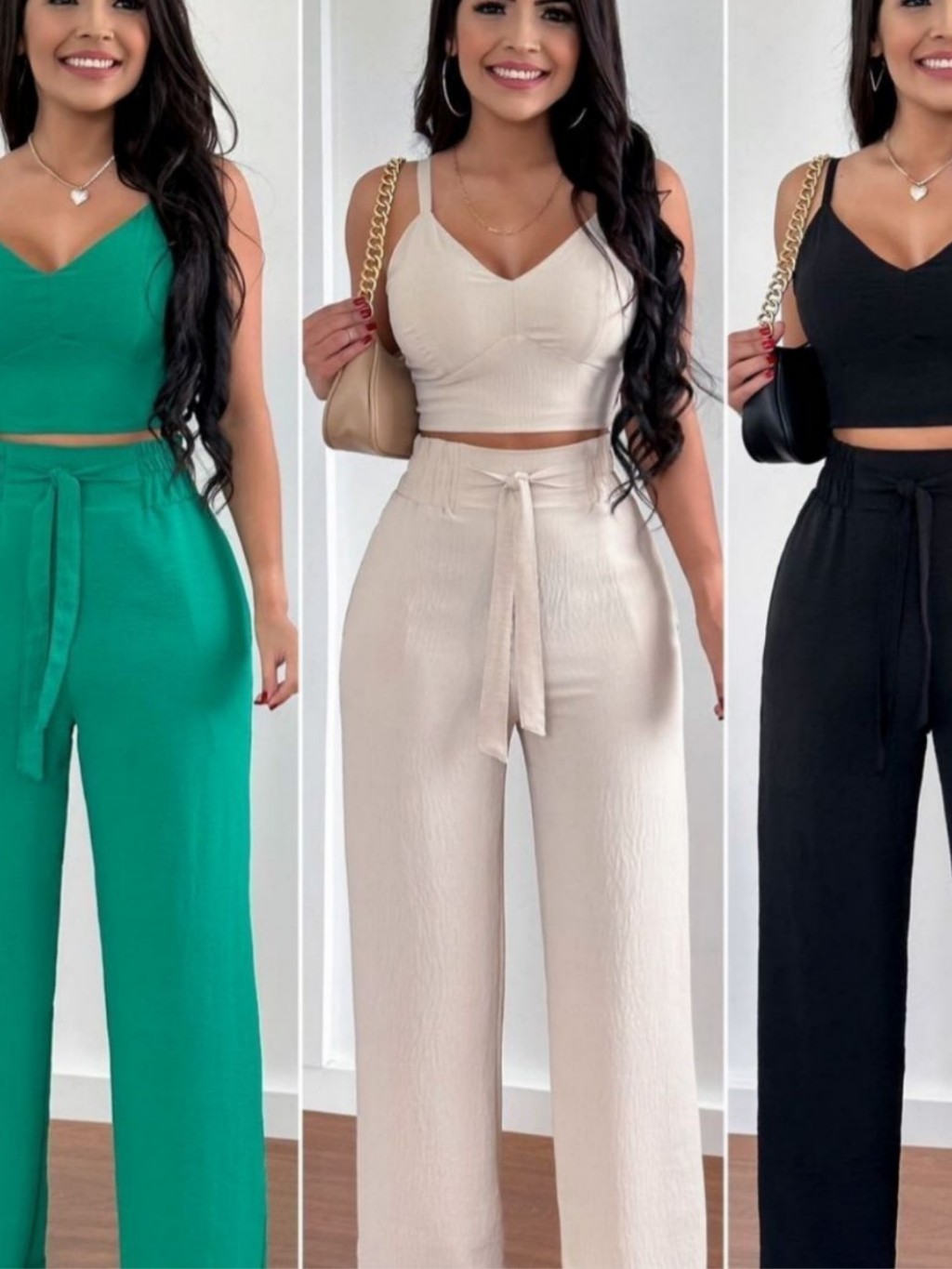 Conjunto Feminino Calça e Cropped Com Bojo Alça Regulagem Tecido Duna Promoção
