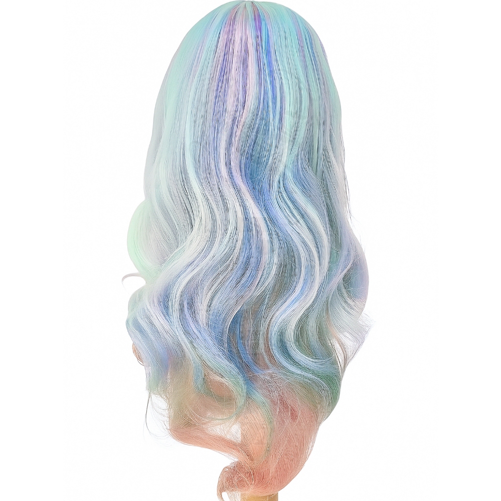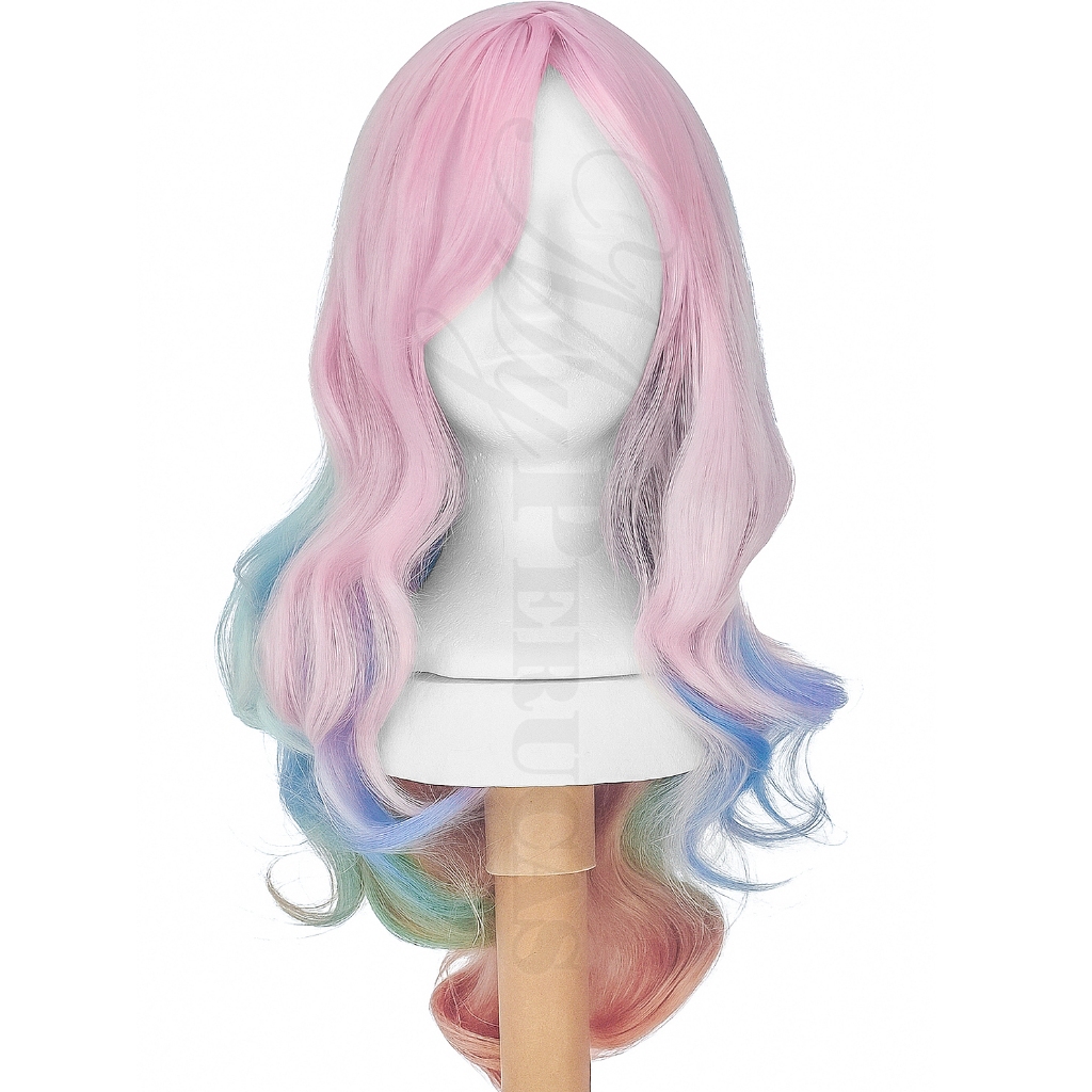 Peruca Colorida Arco-Iris Ondulada 61cm C/ Franja Lolita J-Fashion Wig Unicornio