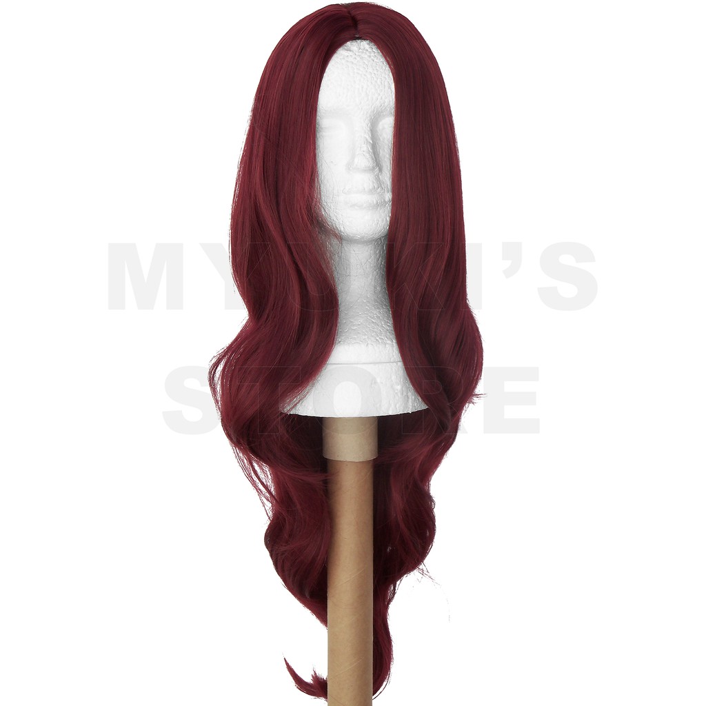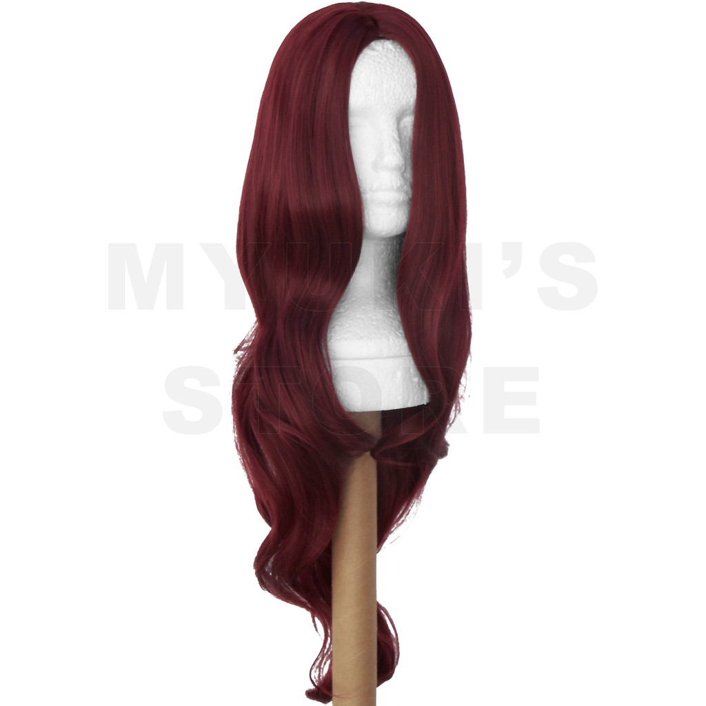 Peruca Sem Franja Vinho Bordô Ruivo Longa 75cm Levemente Ondulada Cosplay Poison Ivy - Pronta Entrega!!