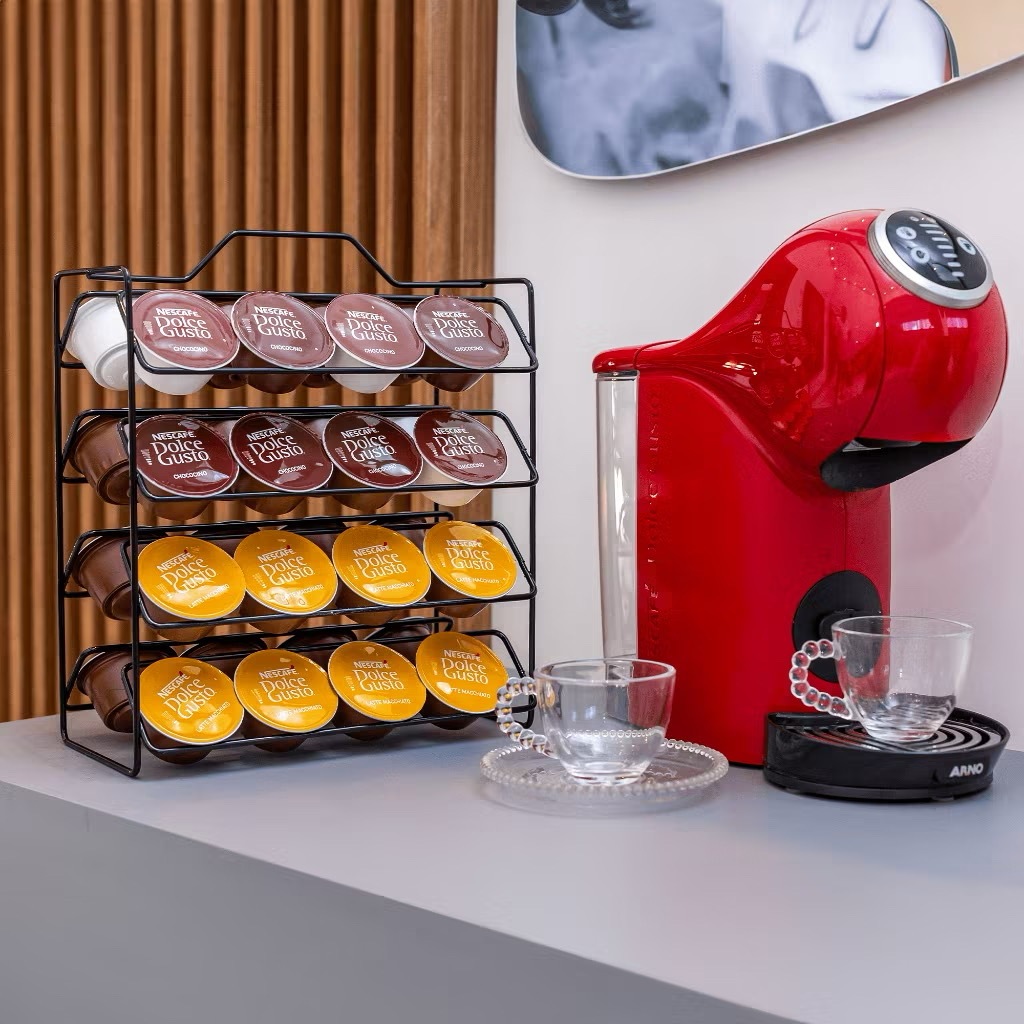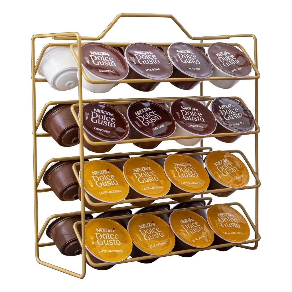 Suporte Cápsulas de Café Dolce Gusto 32 unidades Porta Reforçado Preto Dourado Organizador Suporte bancada
