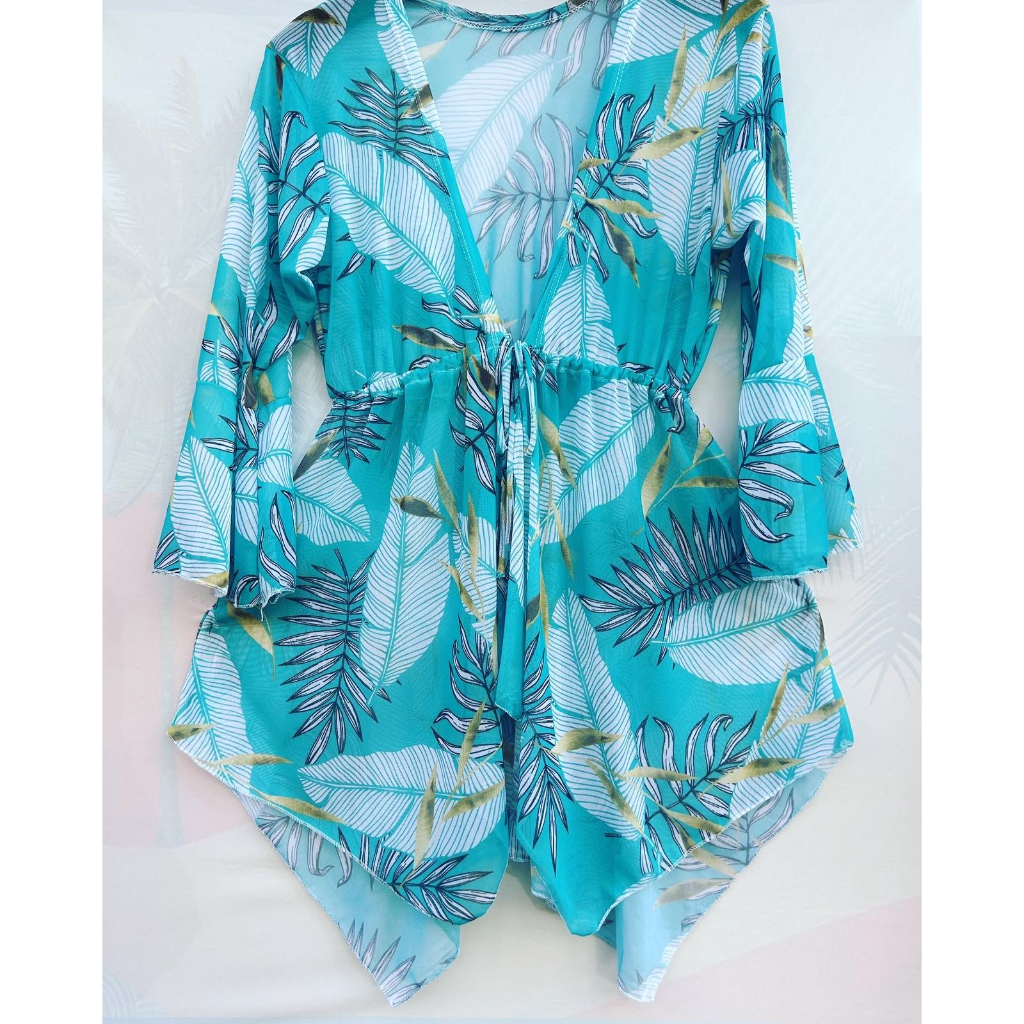 Saida de Praia Curta Estampada Tule Arrastão Babados Kimono Cardigã Vestido Floral Chic Luxo Verão