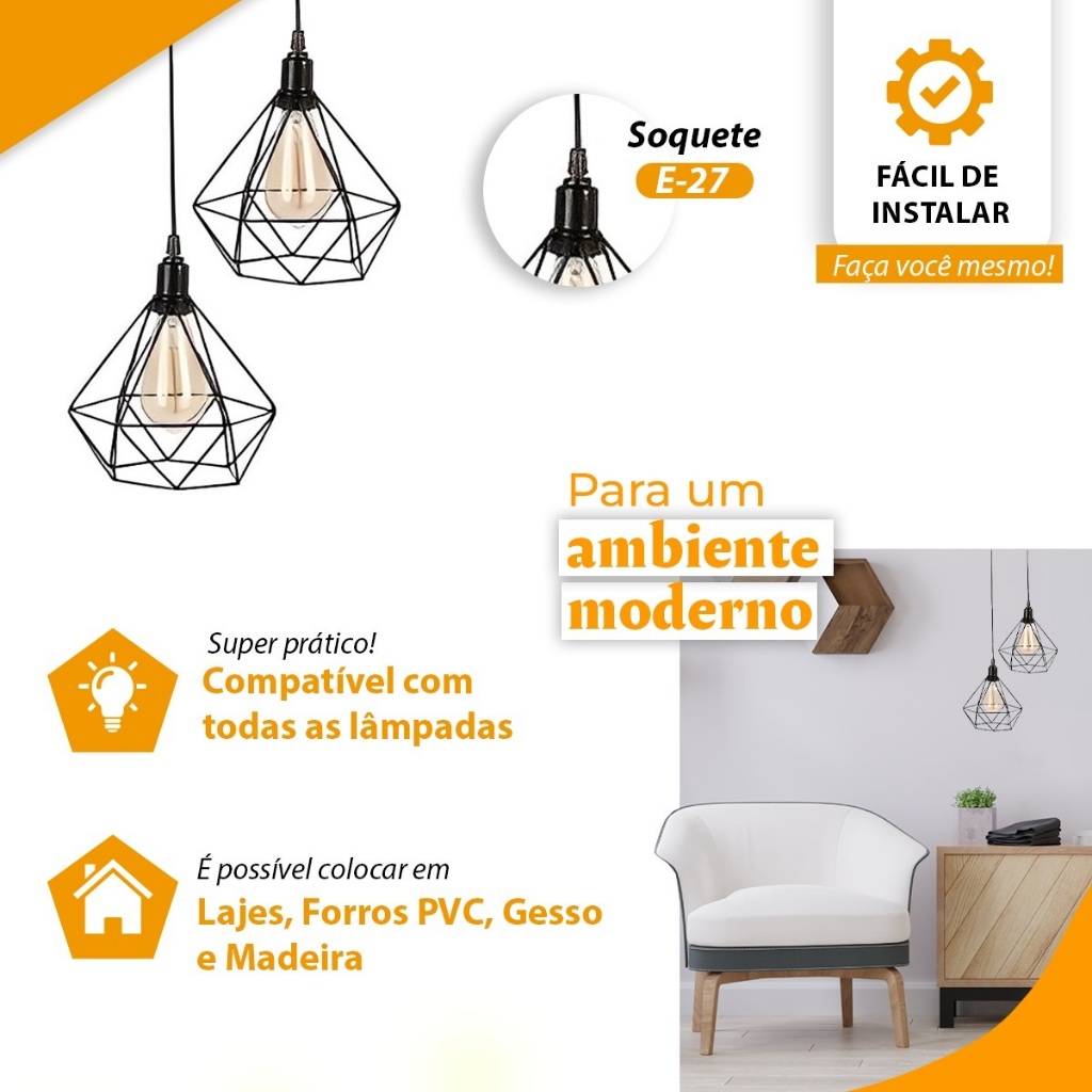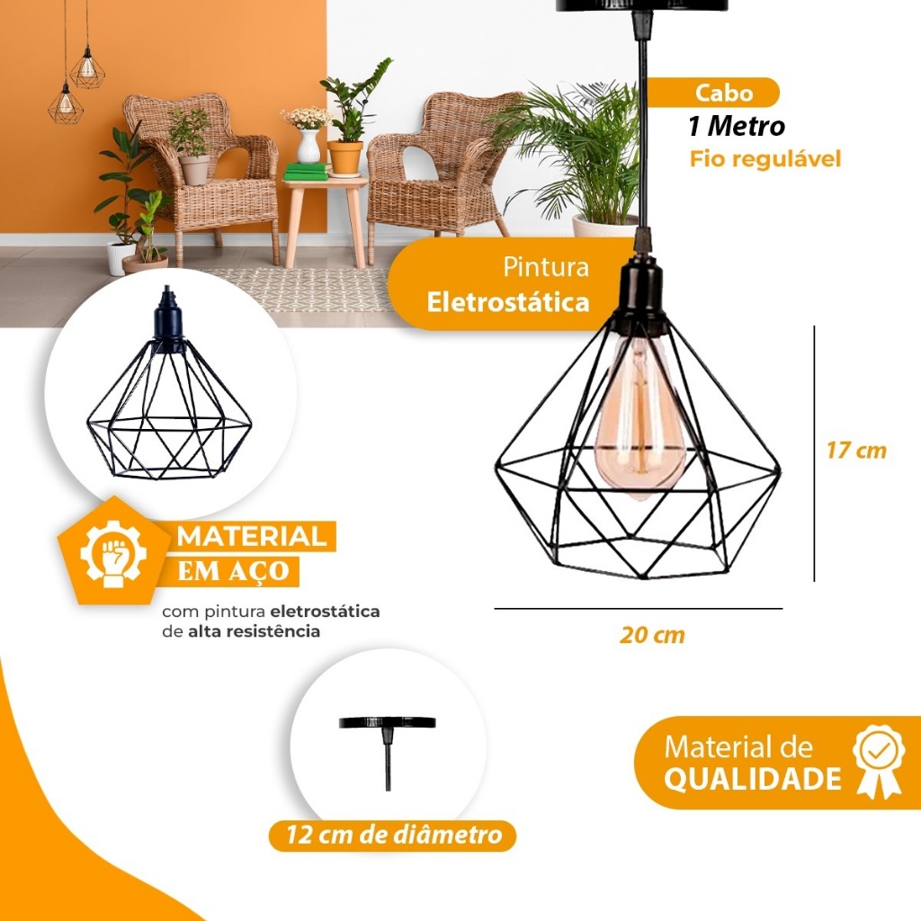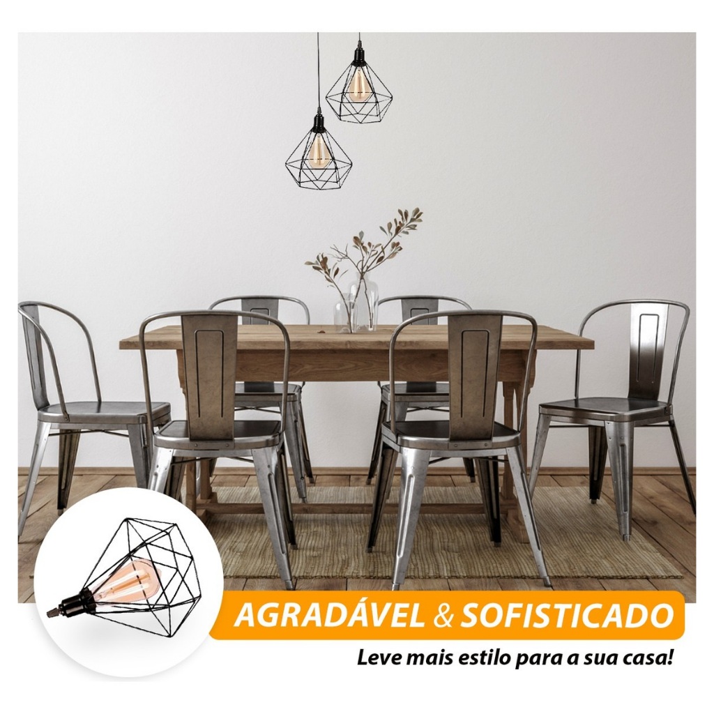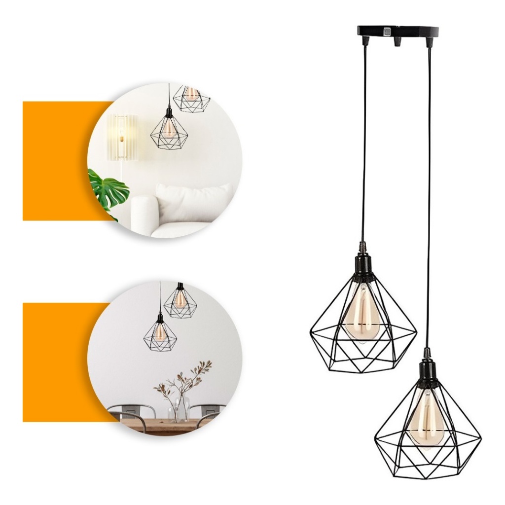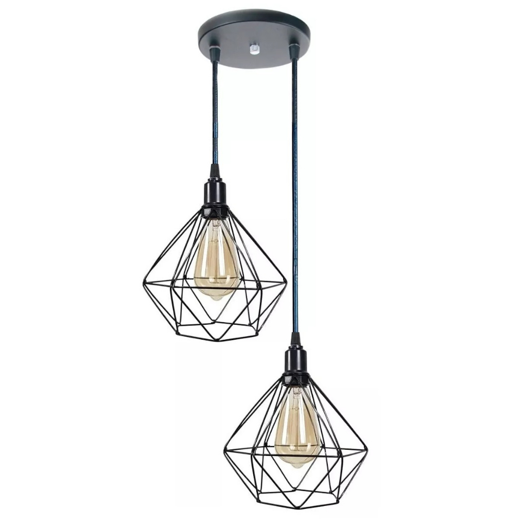 Pendente Aramado Diamante Luminária Base Dupla Teto Retrô Vintage Industrial