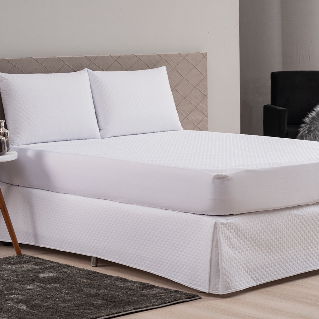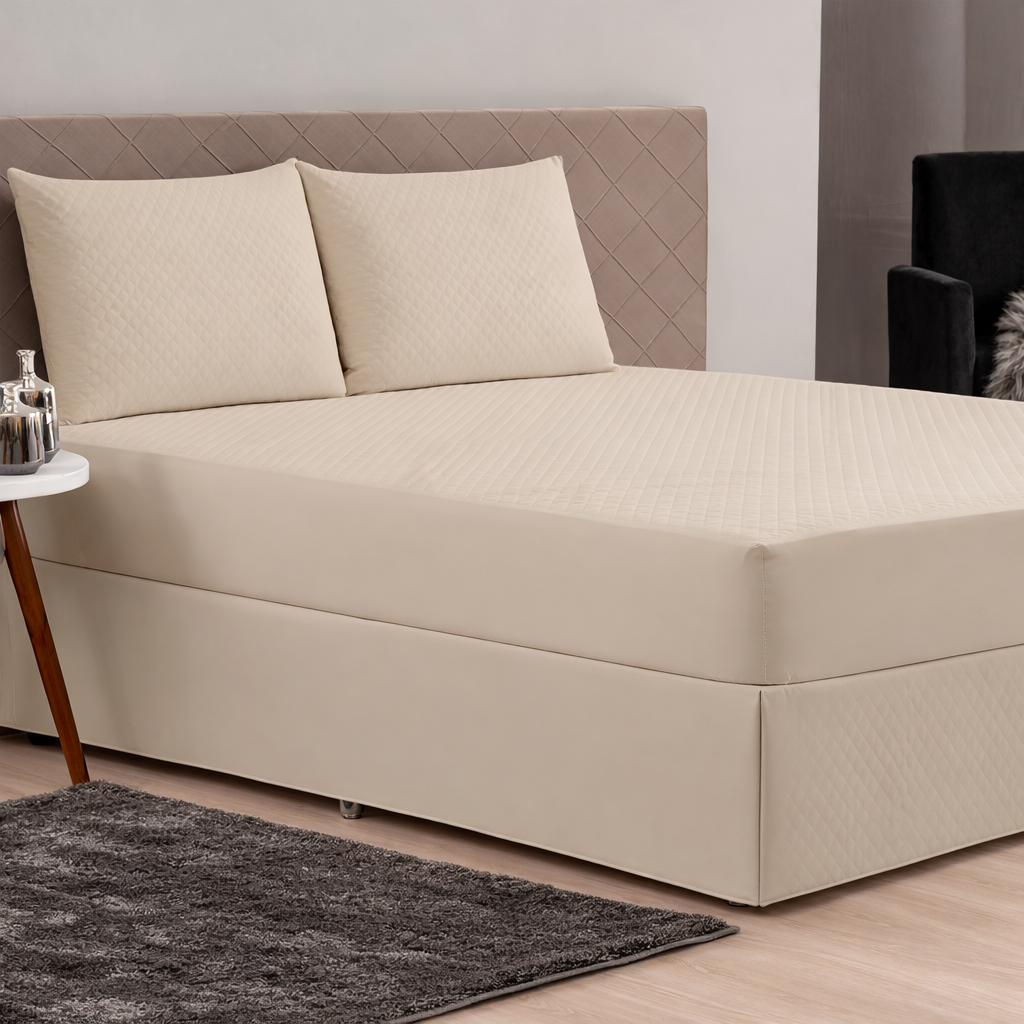 Kit Capa Protetor Impermeável Colchão com Saia Box e Porta Travesseiro 4 Peças: Casal Queen King