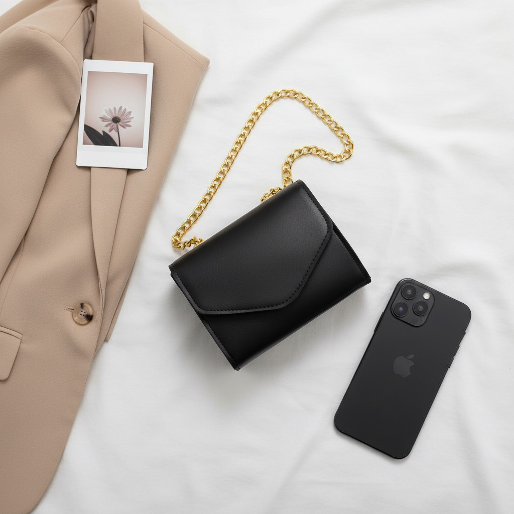 Bolsa Metálica Feminina | Alça Corrente Doura