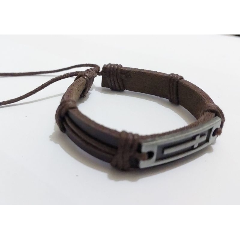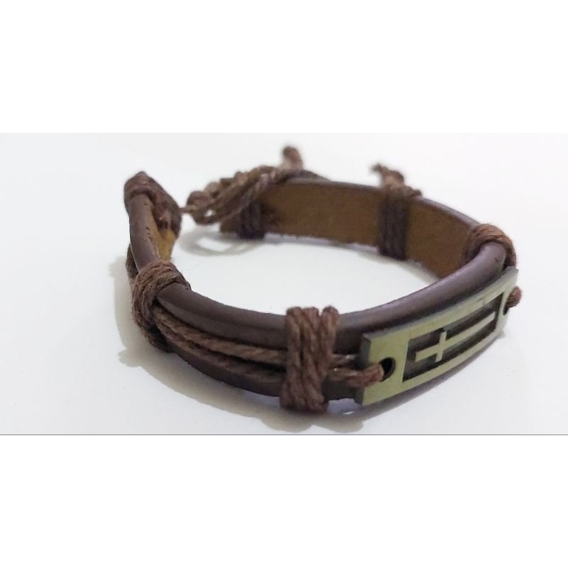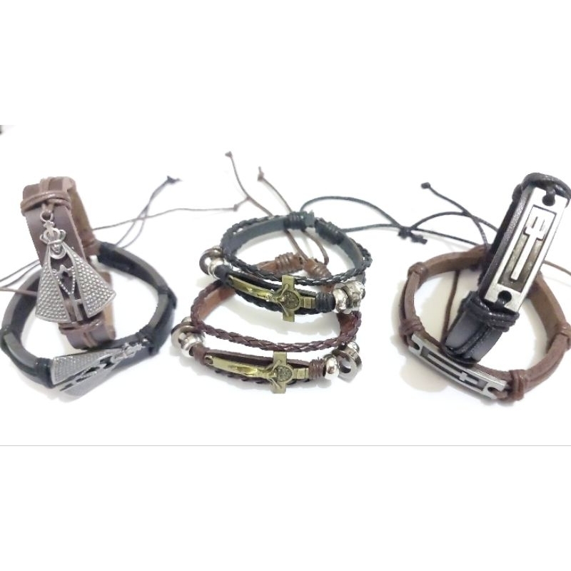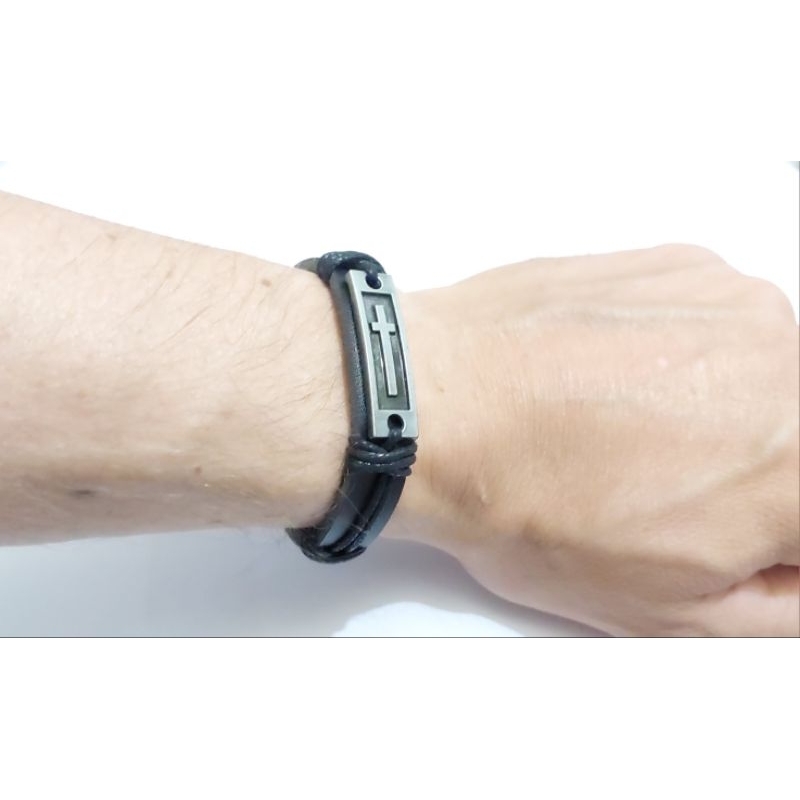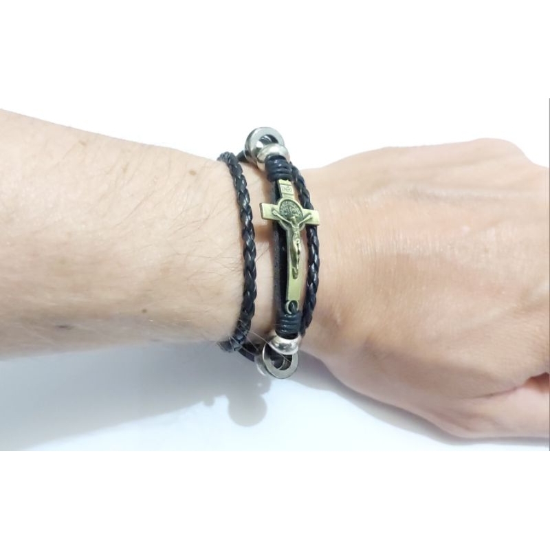 Pulseiras Couro Sintético Religiosas Nossa Senhora e Cruz