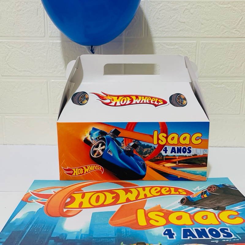 kit festa embalagem de aniversário na escola personalizada Hot wheels - kit festa escolar - caixa festa na escola