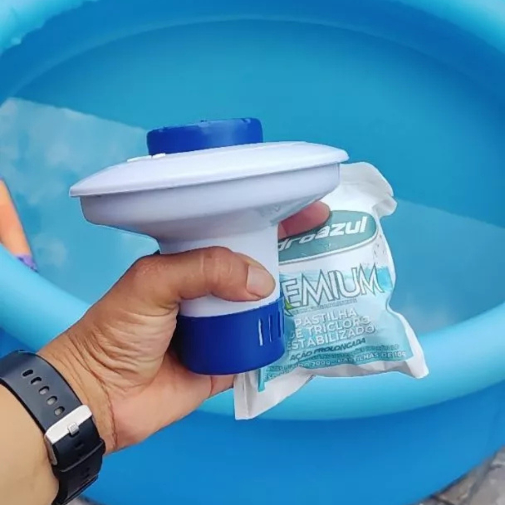 Kit 20 Pastilha Tablete de Cloro + Mini Dosador Clorador Flutuante - Limpeza Piscina - Pooltec