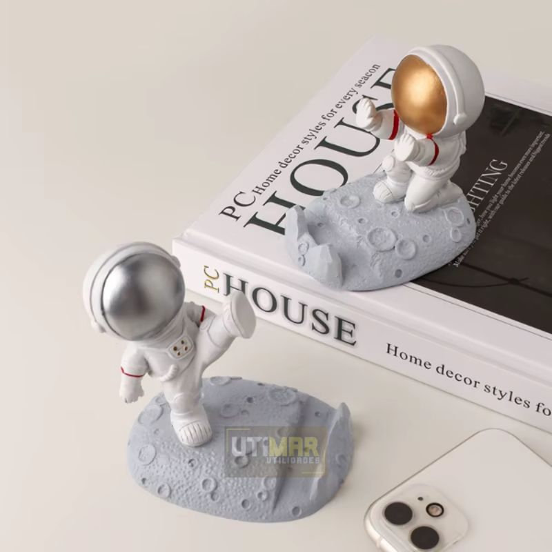 Suporte De Mesa Para Celular Smartphone Astronauta Apoio Decorativo Colecionavel