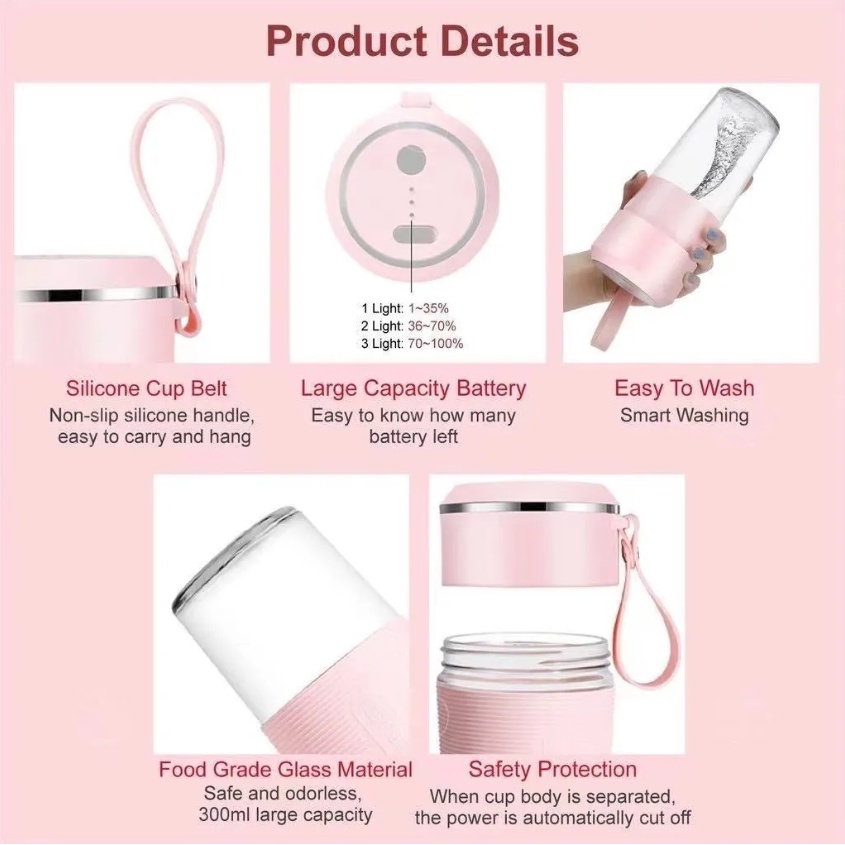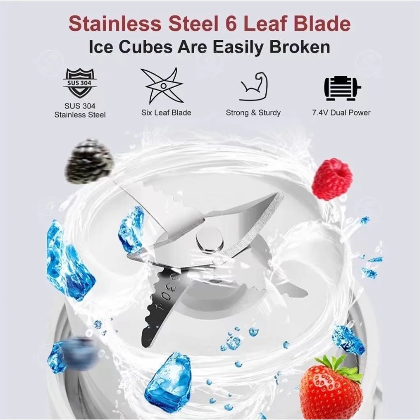 Liquidificador Portátil Copo De Vidro 6 Lâminas Recarregável