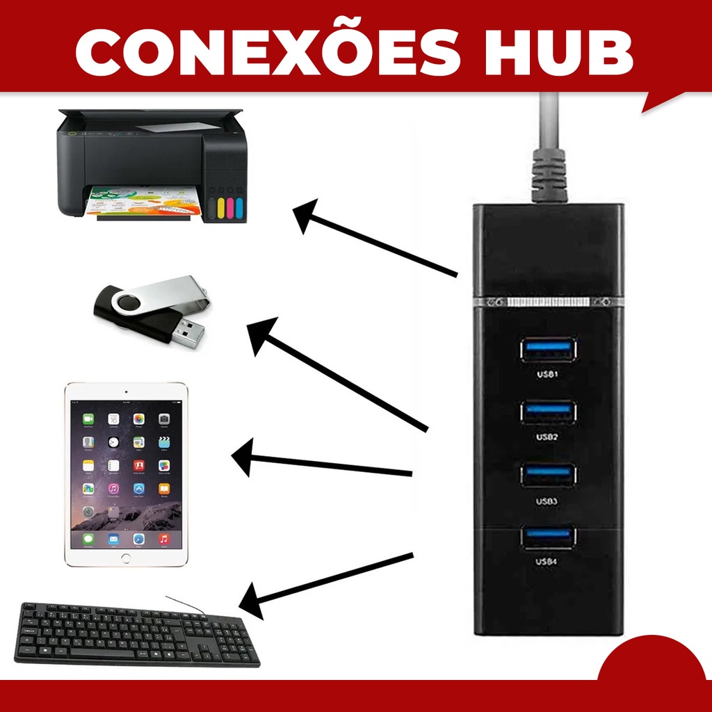 Hub USB 3.0 Gamer + Cabo OTG Tipo C ou V8 para Celular | Kit Mobilador