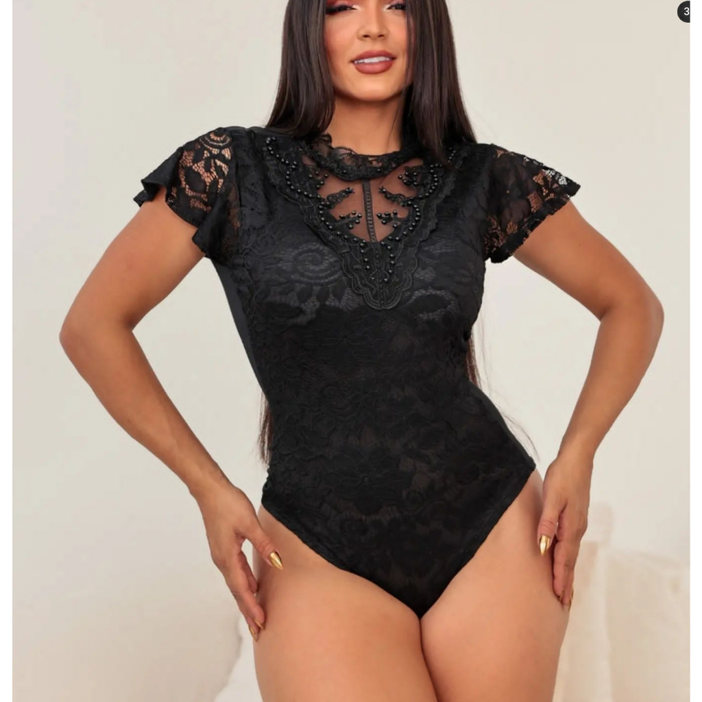 Body Feminino Perolas Estampado Gola Predaria Elegancia