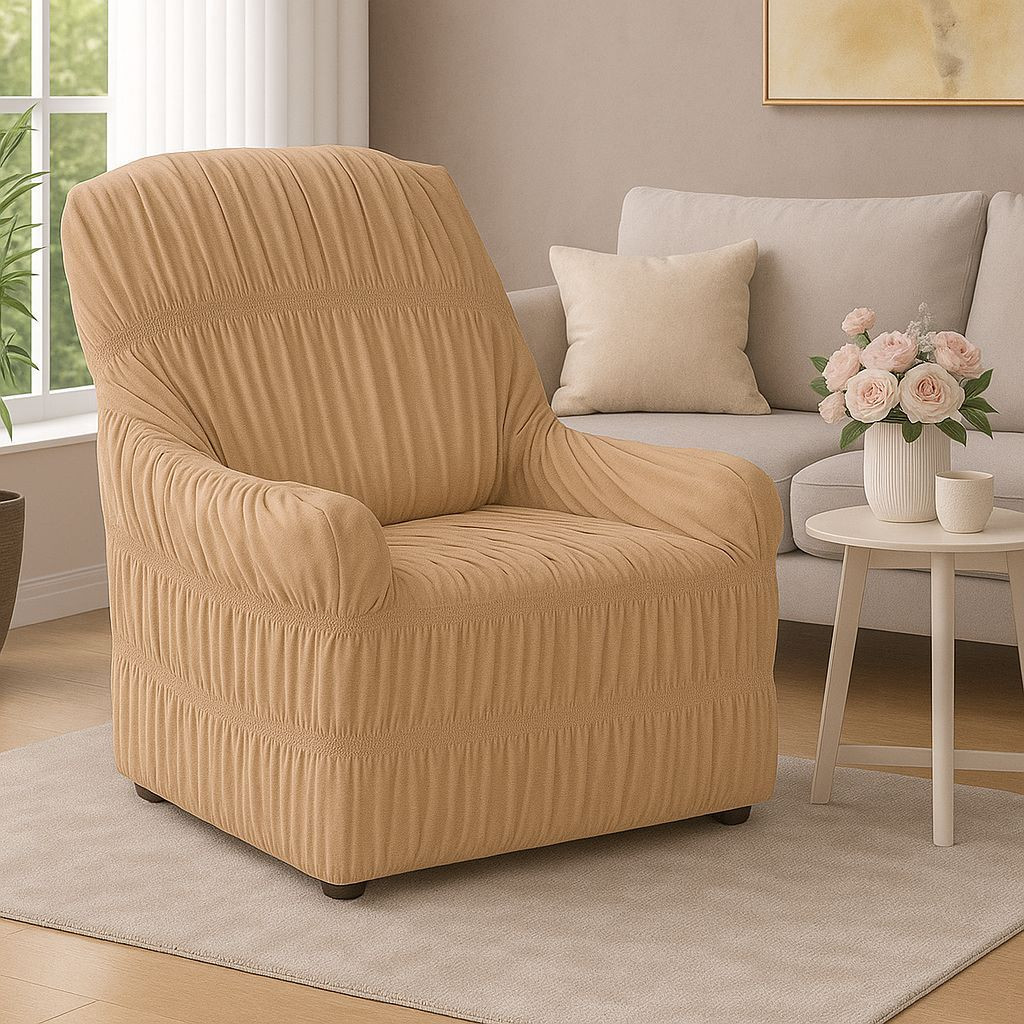 CAPA PARA SOFÁ/POLTRONA DO PAPAI DE 1 LUGAR ELASTICADA EM MALHA/HELANCA 100% POLIÉSTER