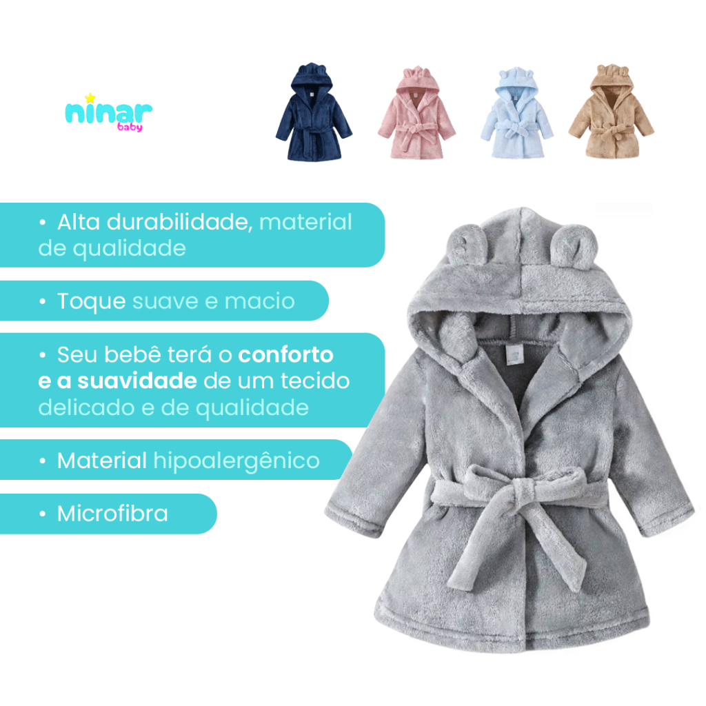 Roupão Infantil Quentinho Com Capuz e Cinto Tecido Plush Antialérgico