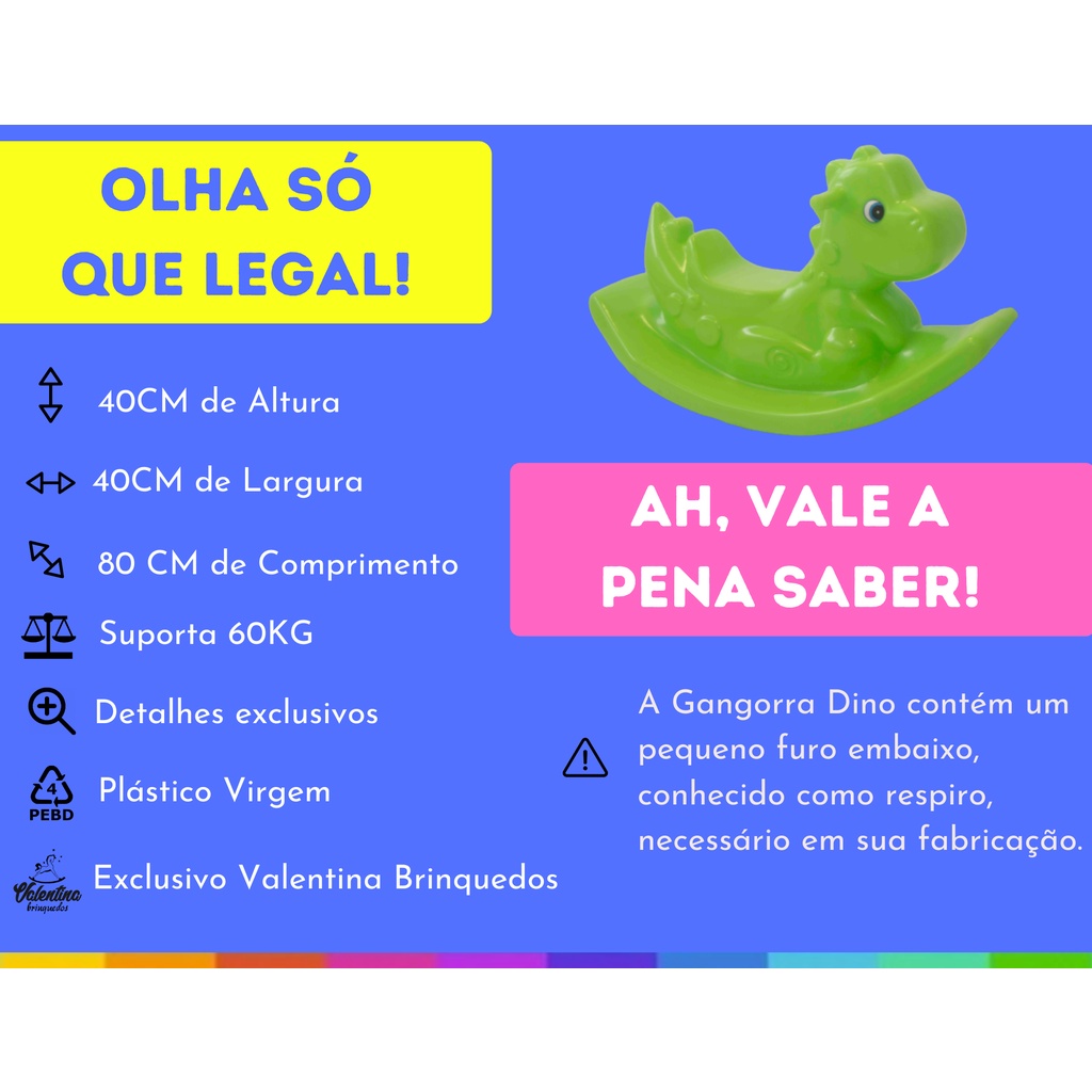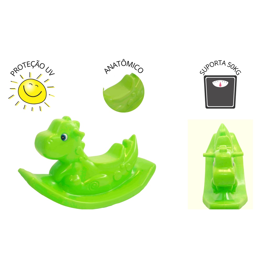 Gangorra Playground Infantil Verde Dinossauro Rex-Balanço Gangorra Promoção para Crianças até 50Kg