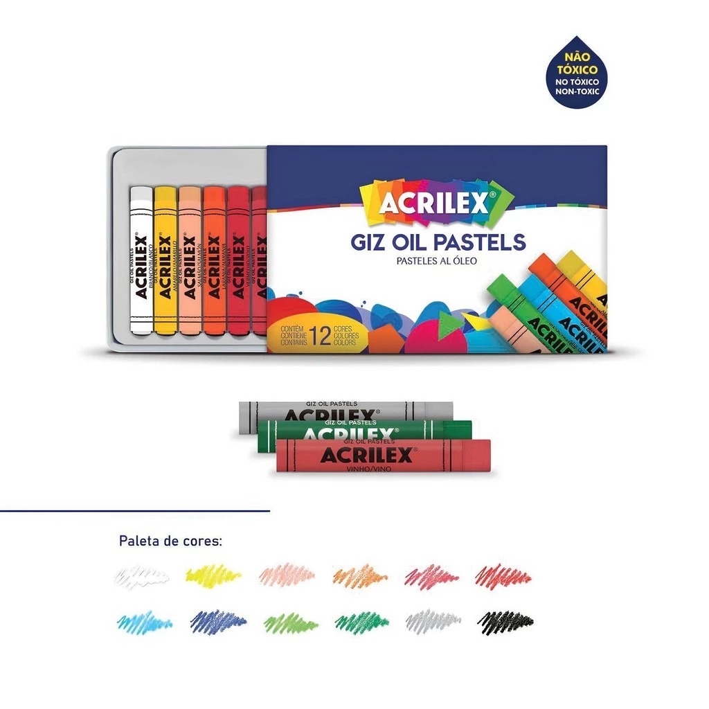 Giz Oil Pastel Acrilex - 12 Cores