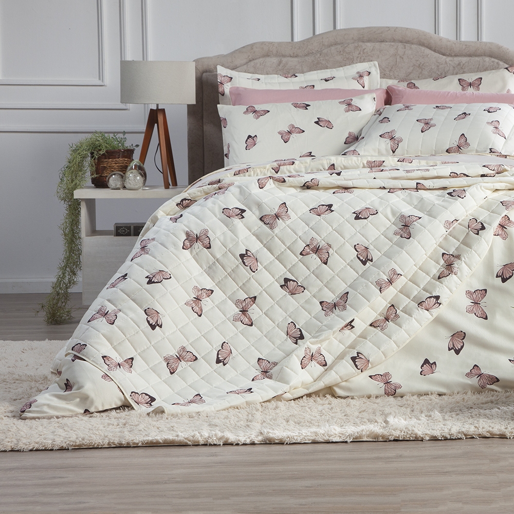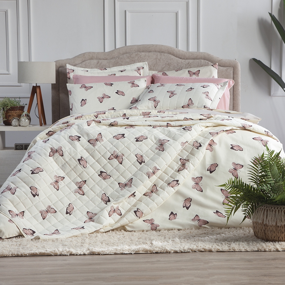 Cobre Leito Borboletas Rosa 3 Peças Queen King Solteiro Casal Matelado Estampado