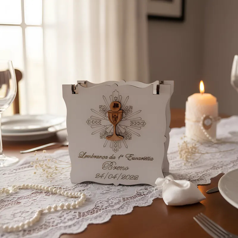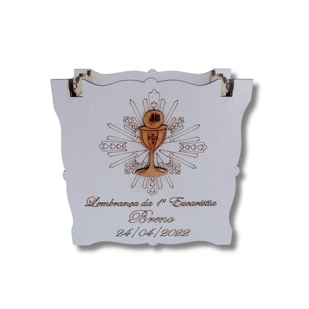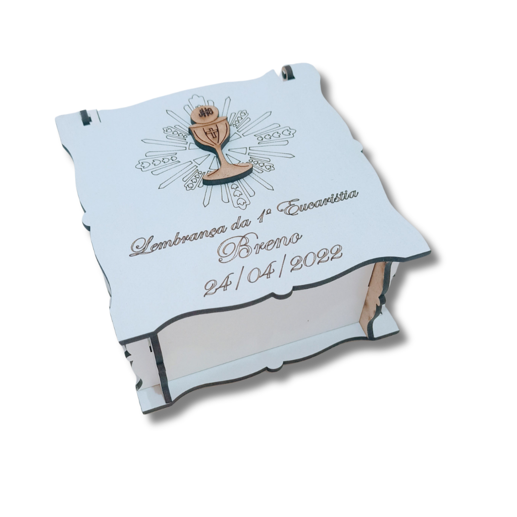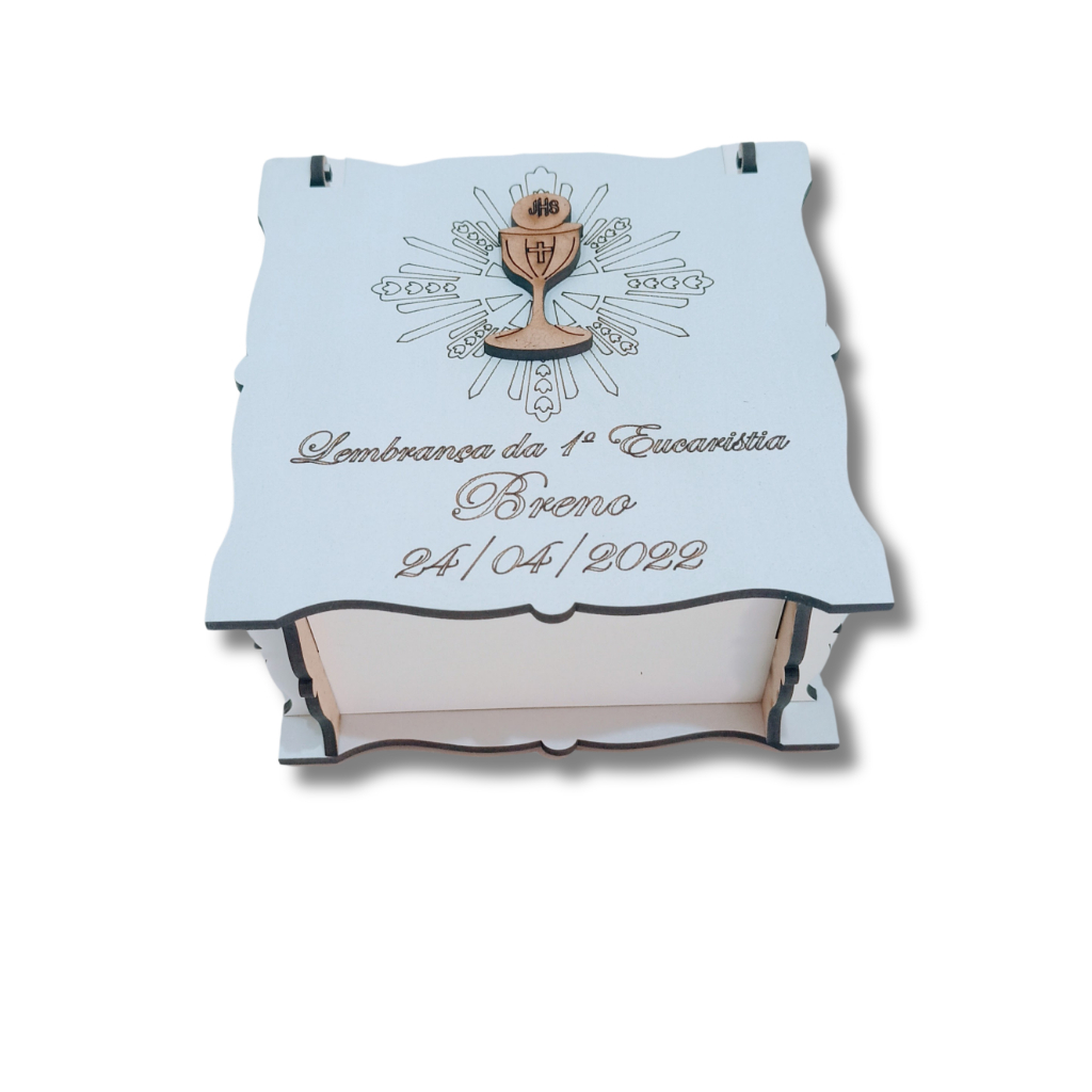 Lembrancinha Primeira Eucaristia Caixinha em MDF Branca 10x10x5 Personalizada