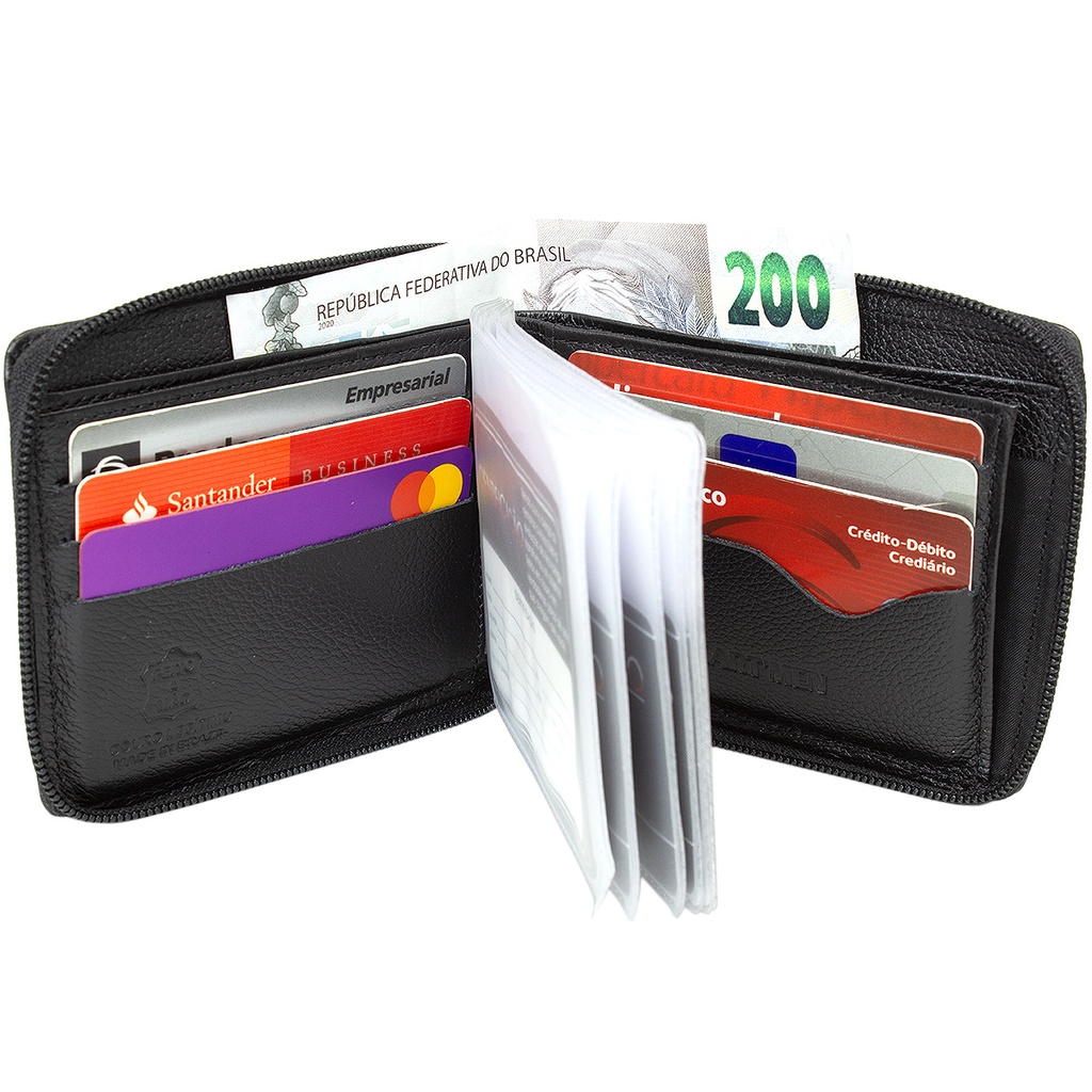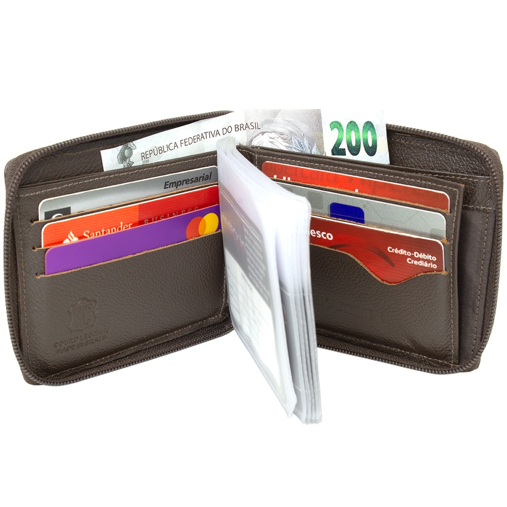 ⭐Ganhe um chaveiro⭐ - Carteira Masculina Couro Legitimo Ziper Duas Divisão Cod830