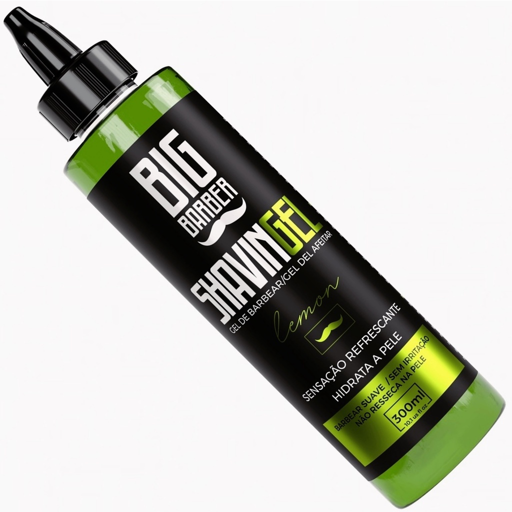 Kit Shaving Gel Barbear Bisnaga Big Barber Lemon + Menthol Caixa Com 6 Unidades