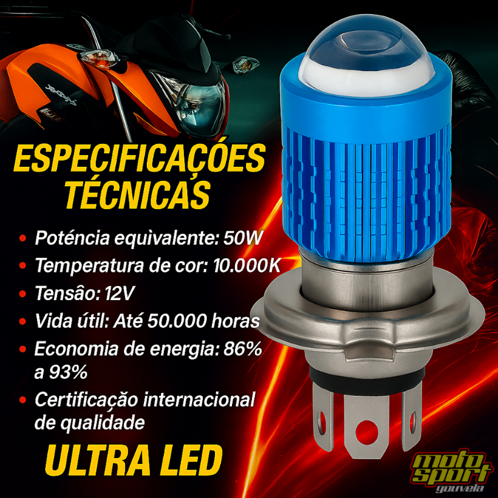 Lâmpada Farol Moto H4 10.000K Bombillo Ultra Led Stallion Super Branca Stallion STG 301