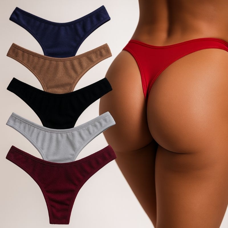Kit 5 Calcinhas Fio Dental em Algodão Não Marca Calcinha Sexy Confortável Revenda