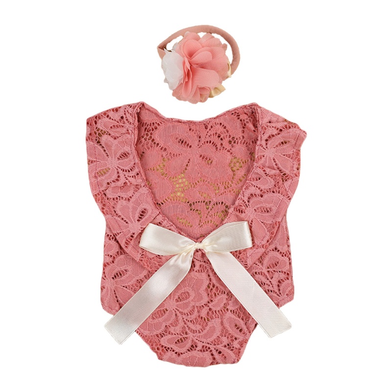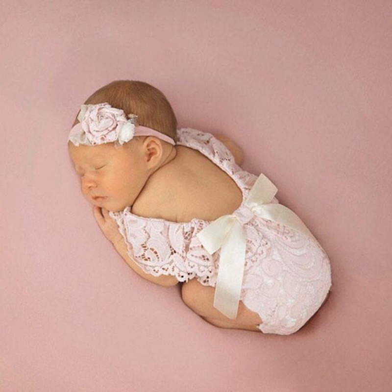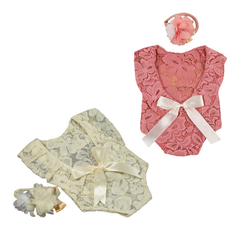 ove Bebê Rendas Romper Headband Set Newborn Fotografia Props Bodysuit Macacão Faixa Cabelo Outfits Foto Traje