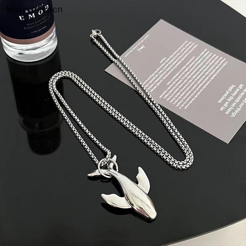 [MAR] Tendência Da Moda Baleia Aço Titânio Pingente Colar Requintado High-end Design Pequena Vento Frio Corrente Longa P