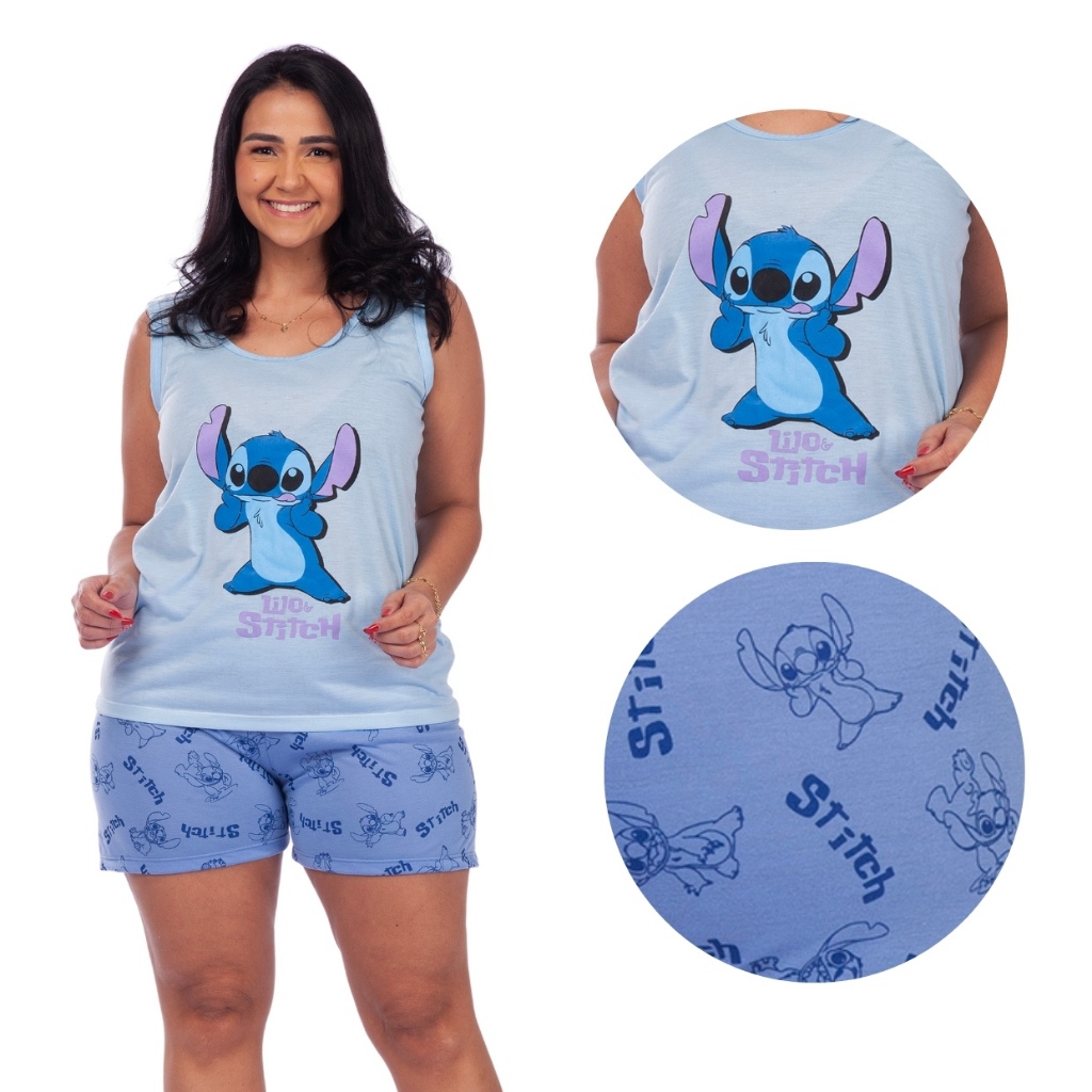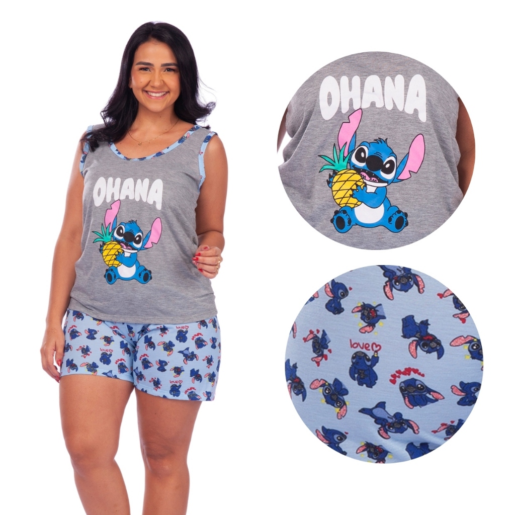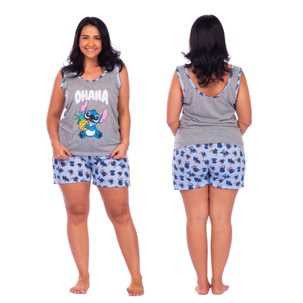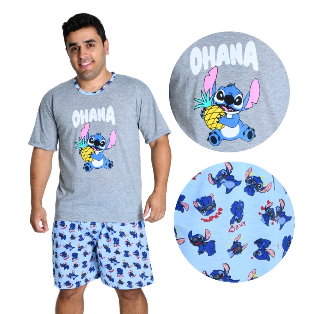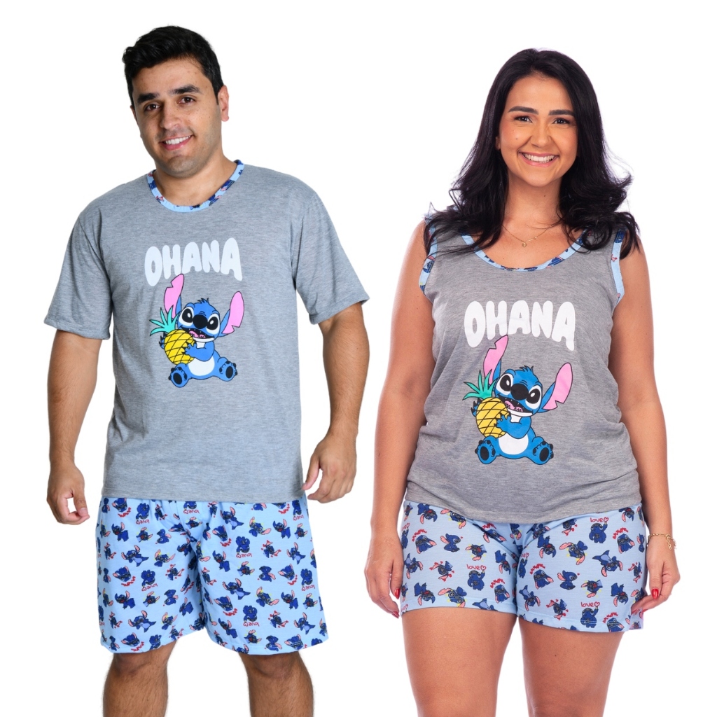 Kit Pijama Masculino e Feminino Casal Combinado Personagens Malha Premium