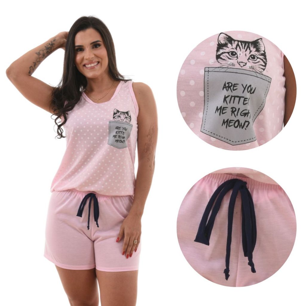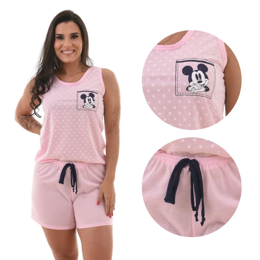 Pijamas Baby Dool Feminino Personagens Curto Malha Oferta