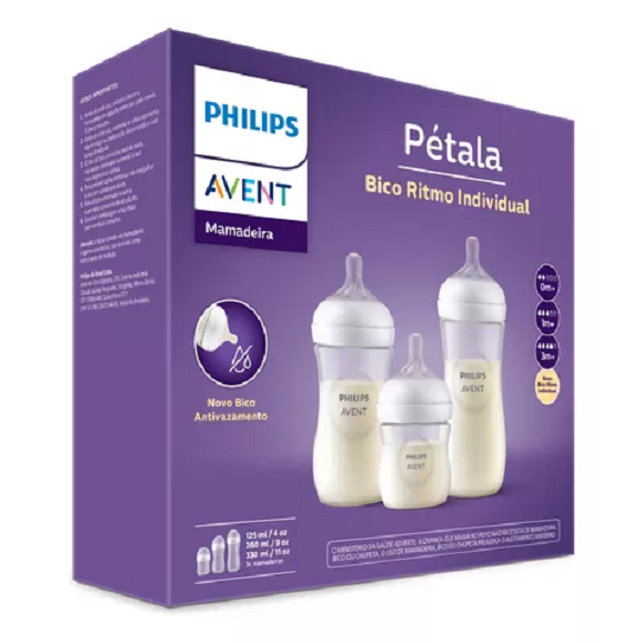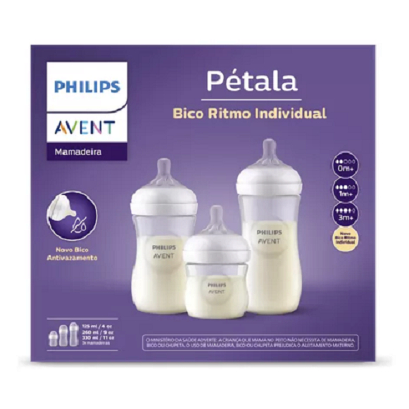 Kit 3 Mamadeiras Pétala Anticólica 125/260/330ml Philips Avent