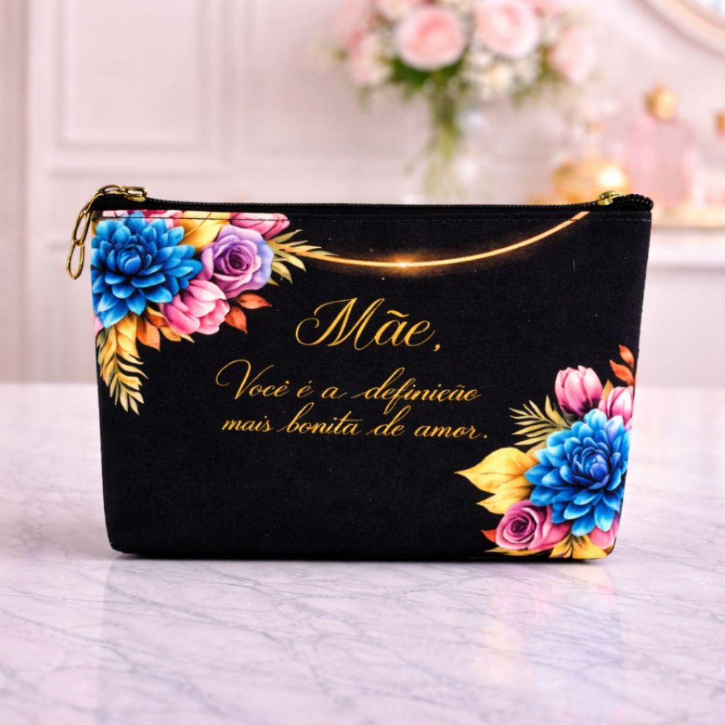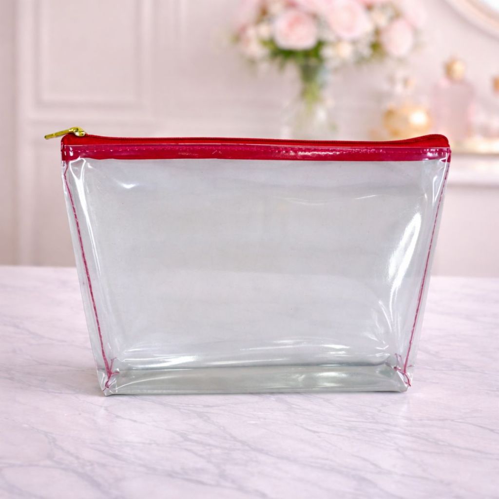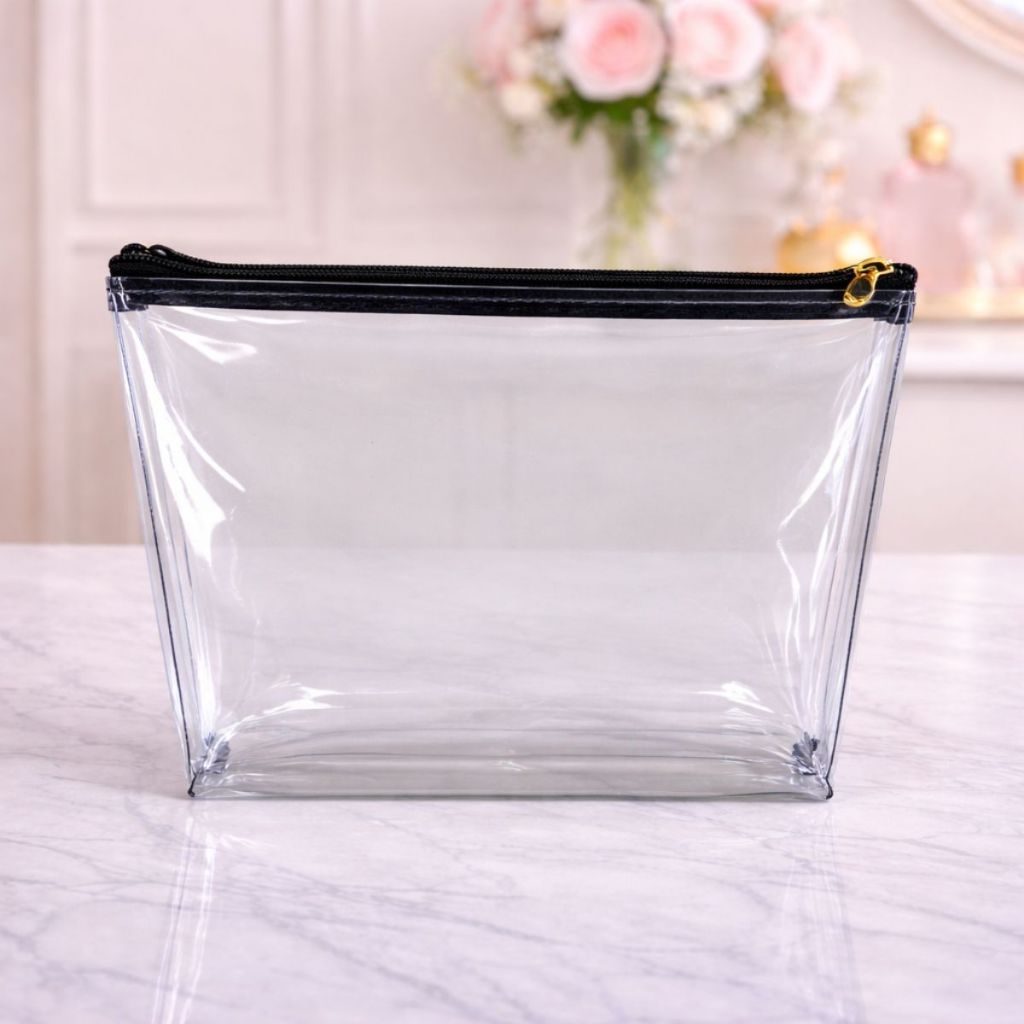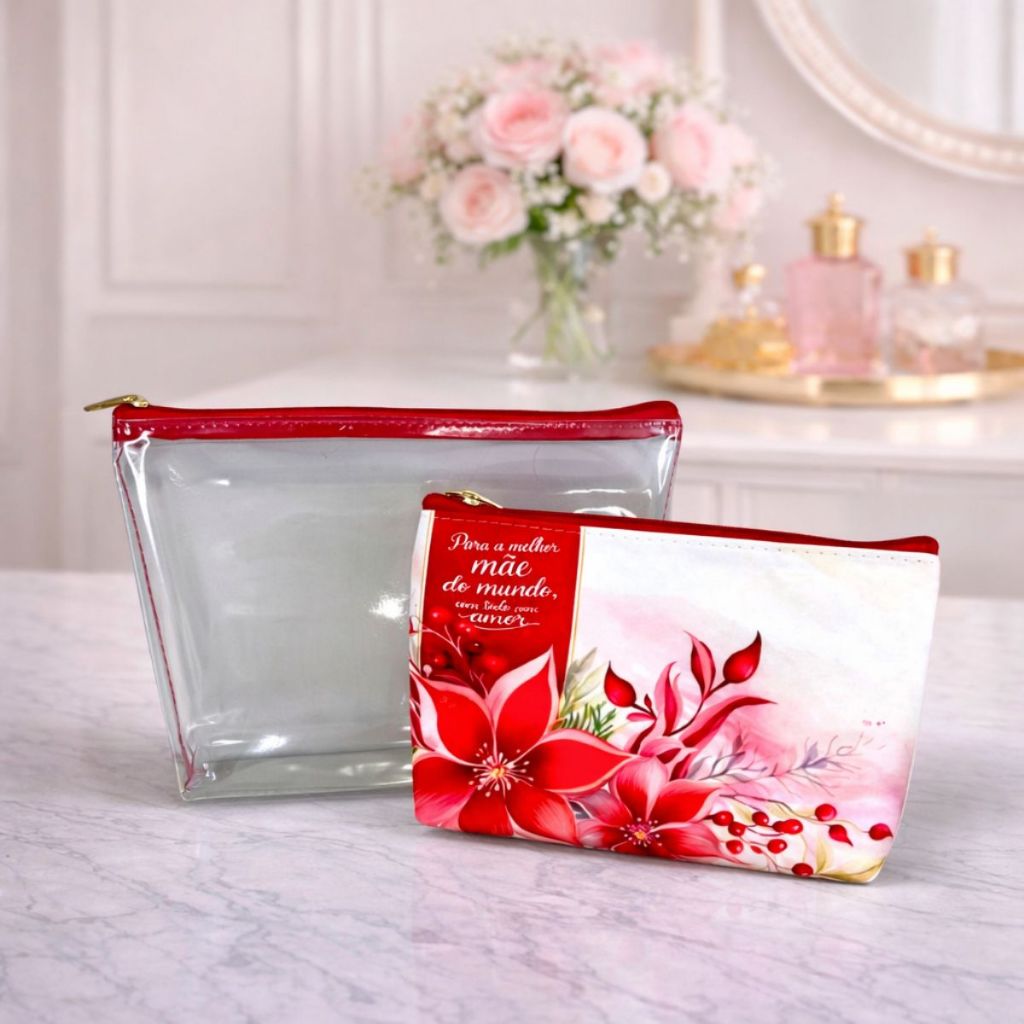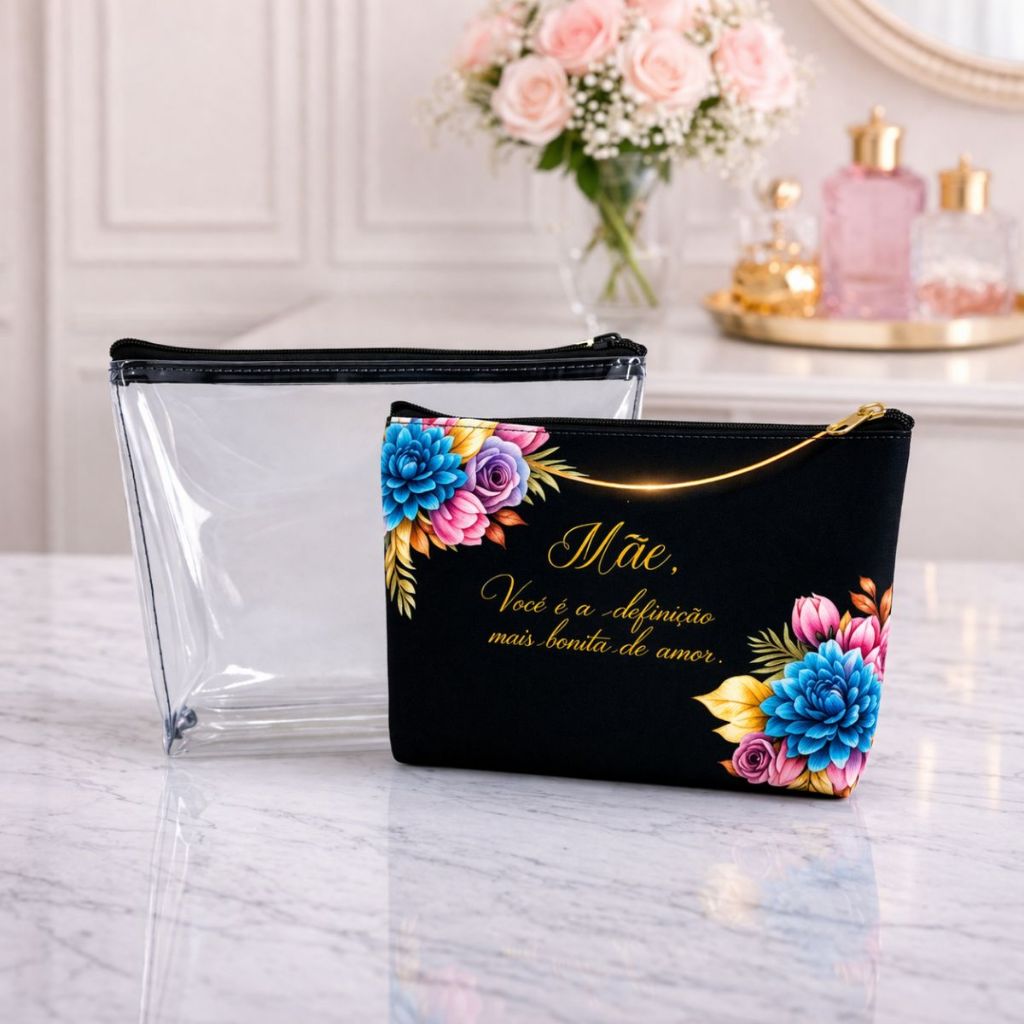 Kit Carinho 1 Necessaire Transparente + 1 Necessaire Estampada Porta Maquiagem Viagem