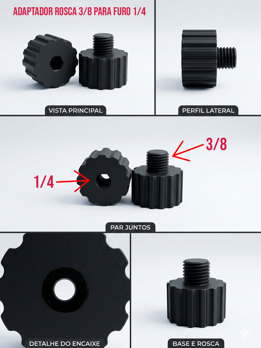 Adaptador conversor 1/4 para 3/8 Adaptador conversor de Rosca 1/4 para 3/8 - Kit 2 Unidades