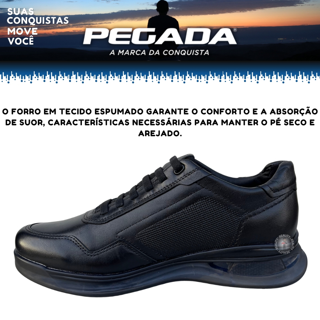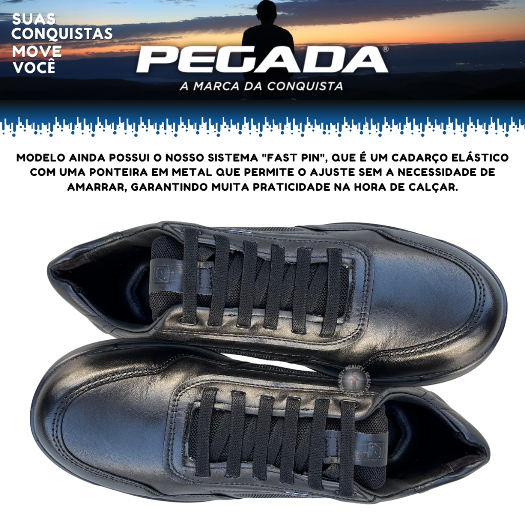 Sapatenis Preto Masculino em Couro Sem Cadarço Pegada 126801
