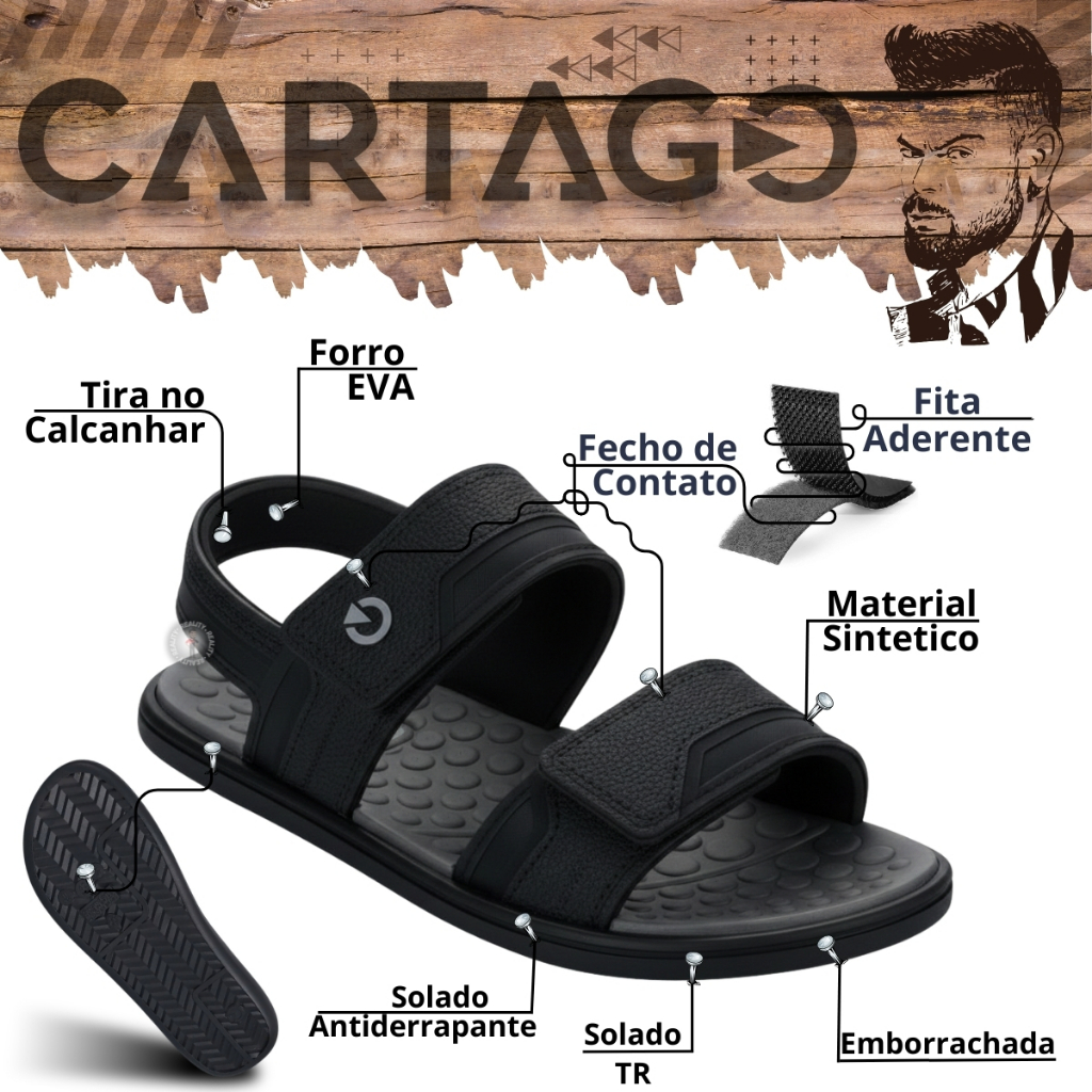Sandália Para Homem Cartago Atlanta Lançamento Leve Confortável 12489
